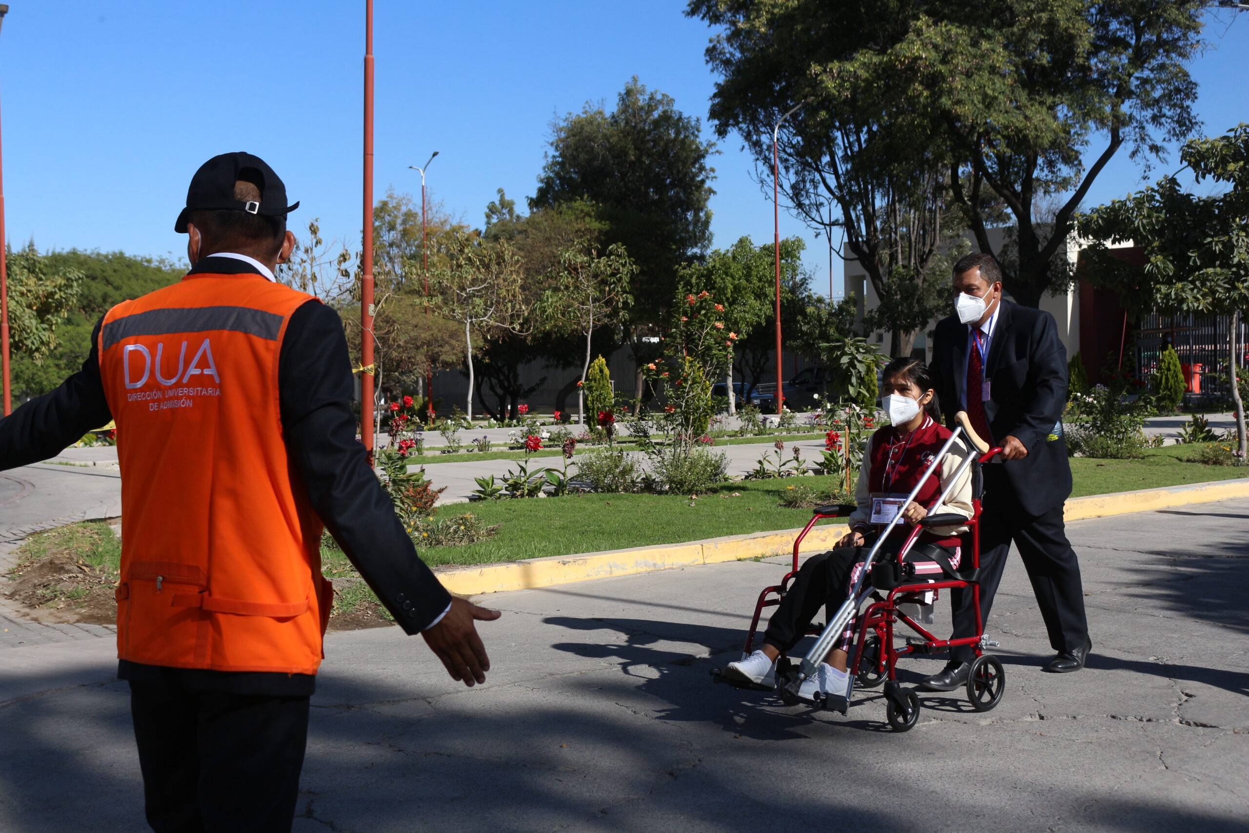 El personal administrativo, docente y de la Comisión de Admisión estuvieron presentes desde el ingreso y en las aulas para asistir a los jóvenes postulantes en situación de vulnerabilidad. Se dispuso de sillas de ruedas para quienes presentaron problemas físicos y personal de enfermería dio asistencia a los postulantes que tuvieron algún malestar.
