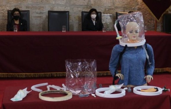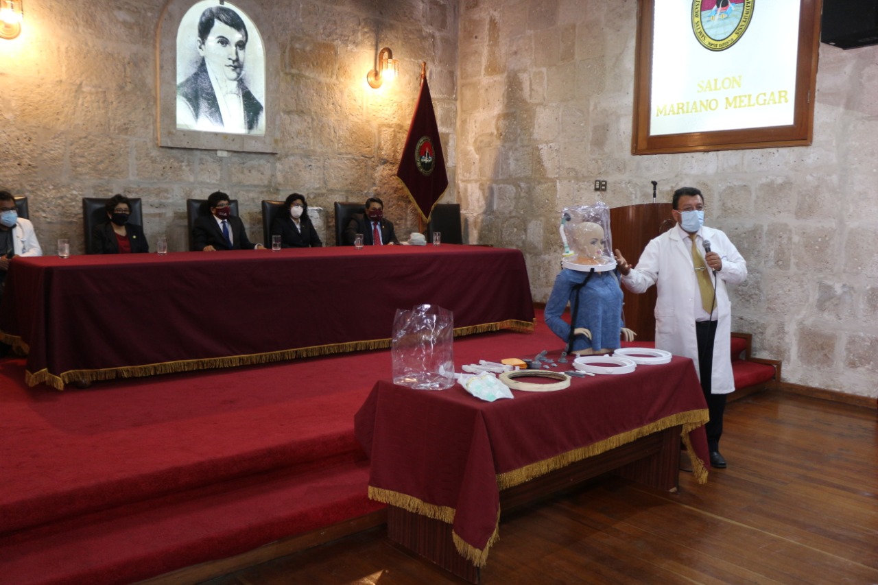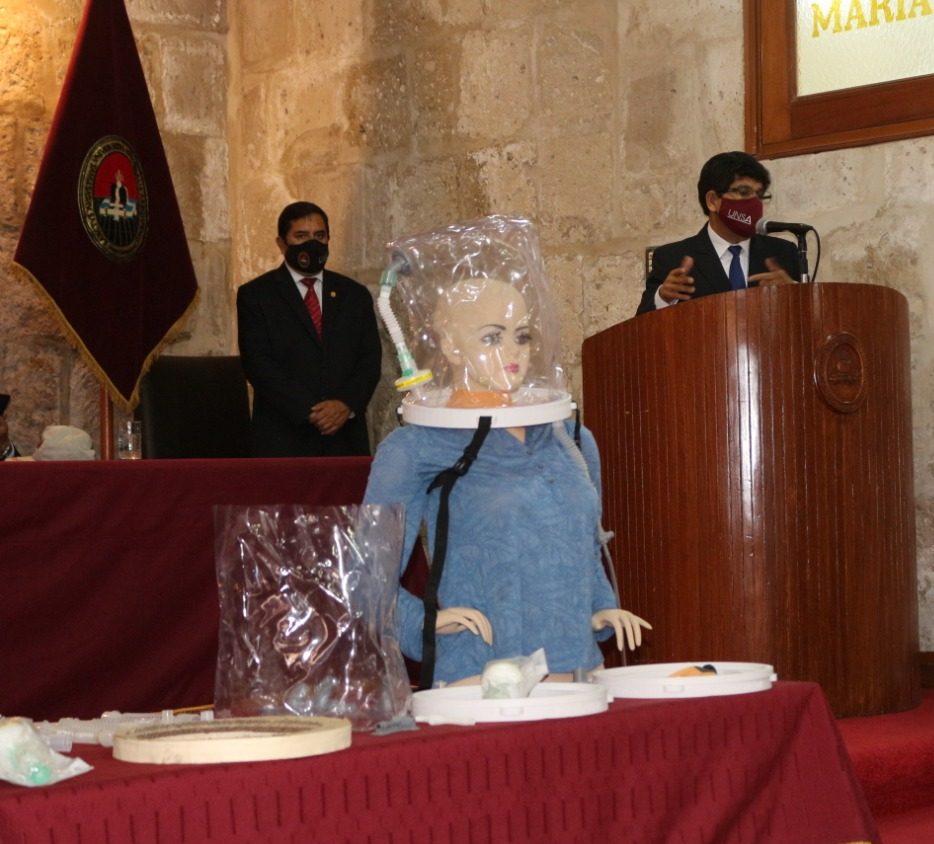 La Universidad Nacional de San Agustín de Arequipa (UNSA) presentó el Casco de Presión Positiva Continua en la vía Aérea (CPAP, por sus siglas en inglés), confeccionado a pedido de especialistas de EsSalud para el tratamiento de pacientes con Covid 19 y otros problemas respiratorios que necesiten de oxígeno.