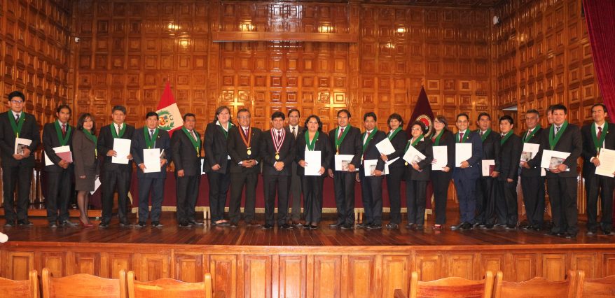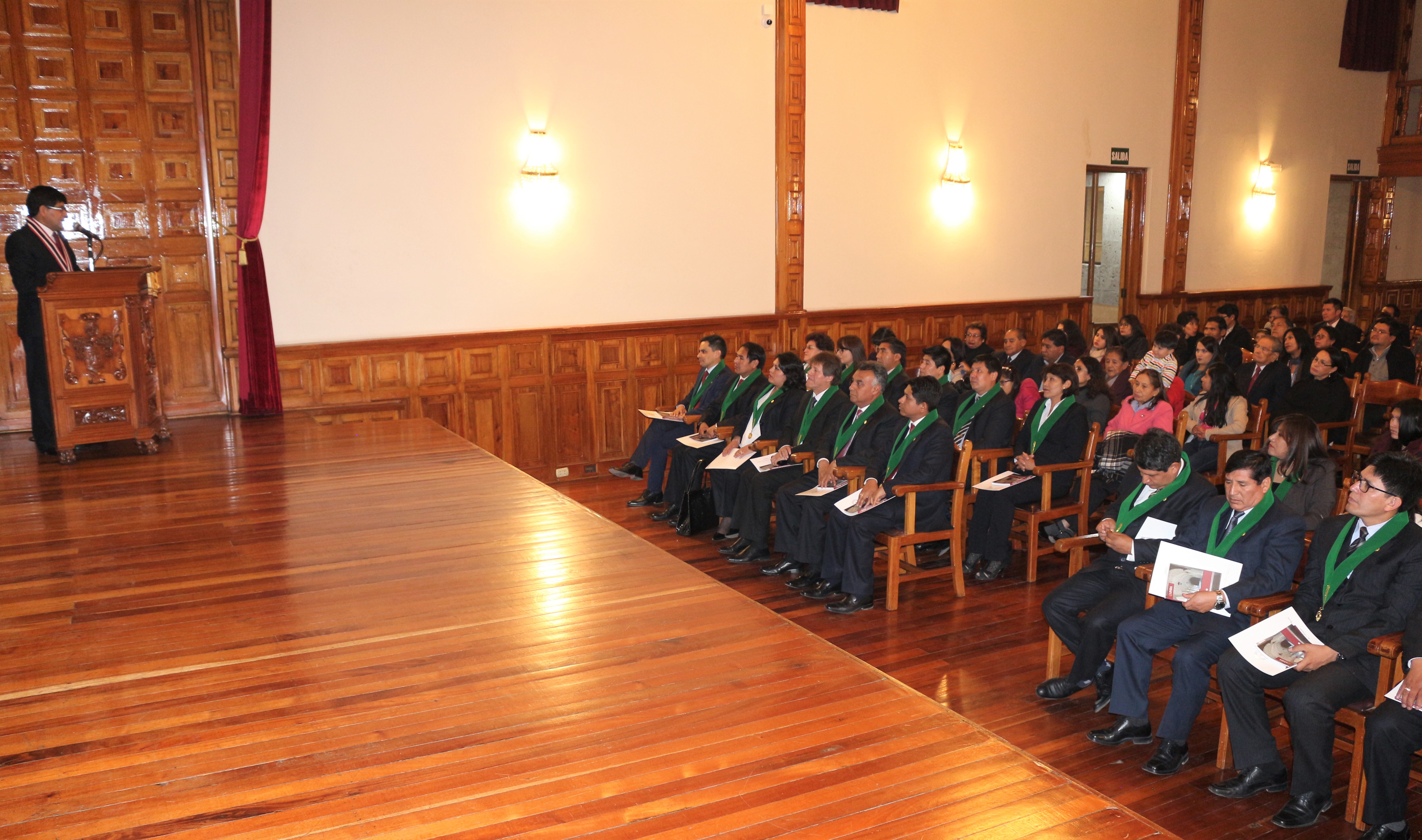 La máxima autoridad de la Casa Agustina felicitó a los 24 docentes que se incorporan como profesores ordinarios en la categoría de auxiliares, “Es muy grato reconocer el esfuerzo y calidad académica de cada uno de ustedes con la entrega de sus resoluciones como integrantes de la Comunidad Agustina” señaló el Dr., Rohel Sánchez que motivó a los nuevos catedráticos a revisar y estudiar el Modelo Educativo de la UNSA.