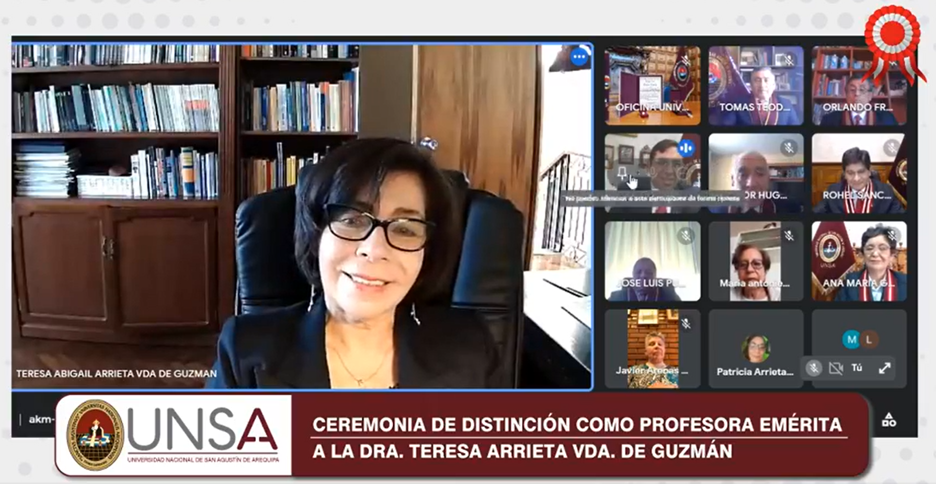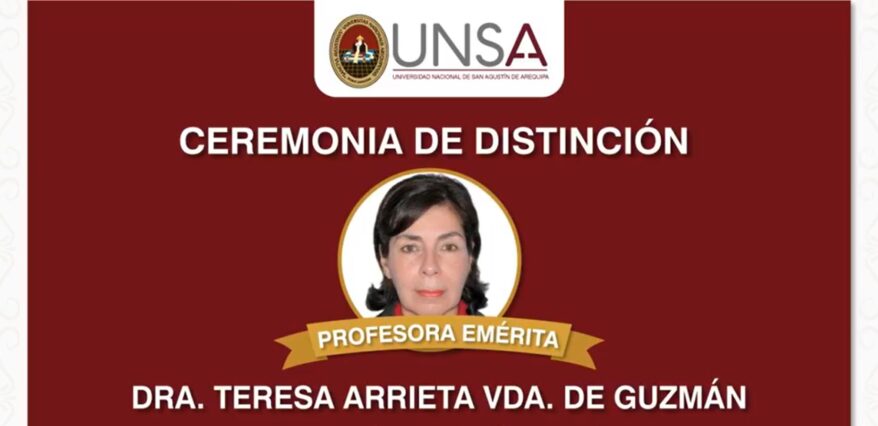 La Dra. Teresa Arrieta Vda. de Guzmán, fue nombrada como Profesora Emerita de la Universidad Nacional de San Agustín de Arequipa, mediante una ceremonia virtual y aprobada por el Consejo Universitario con la resolución N° 0325-2021.