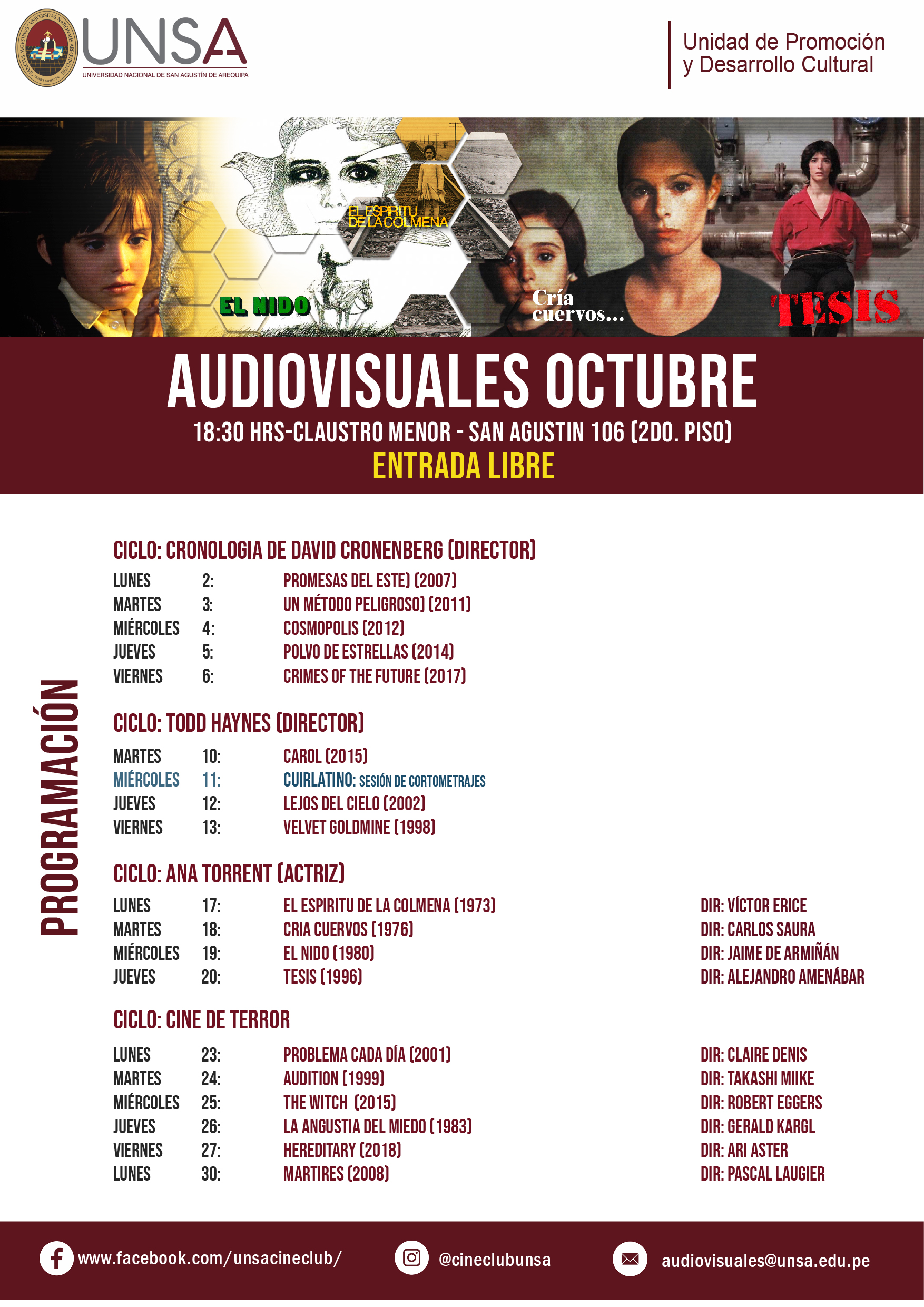 Culminamos la ultima semana con una selección de películas de terror de directores de diversas nacionalidades y de resaltante importancia en su filmografía.