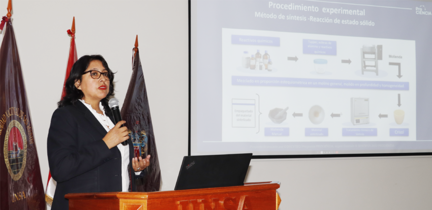 La Dra. Jessica Mosqueira Yauri, investigadora de la Facultad de Ciencias Naturales y Formales de la UNSA, presentó los resultados de una investigación que estudio las propiedades del aluminato y el silicato de estroncio con el objetivo de utilizarlos como dosímetros que midan los niveles de radiación que reciben las personas expuestas a este tipo de energía.