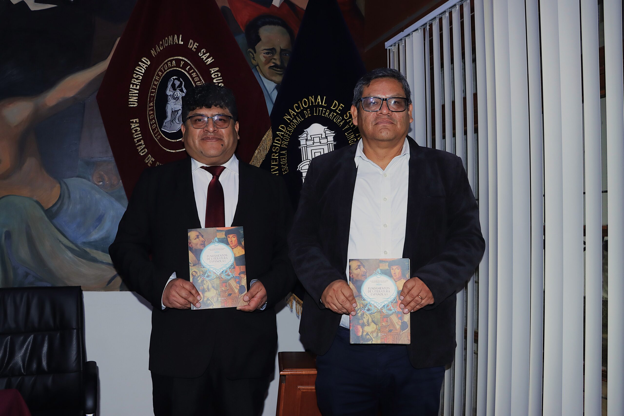 El Dr. Julio César Ticona Lecaros y el Mag. Roger Tahua Delgado, docentes de la Facultad de Filosofía y Humanidades, presentaron Fundamentos de Literatura Española I, un texto académico que analiza los aportes que dieron los principales autores de la literatura española en los períodos medieval, renacentista y barroco.