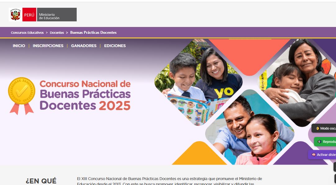El reconocimiento fue otorgado tras la publicación de los resultados nacionales del XIII Concurso Nacional de Buenas Prácticas Docentes, organizado por el Ministerio de Educación, en el que participaron más de 2 500 docentes de instituciones públicas y privadas de Educación Básica Regular, Alternativa y Especial.
