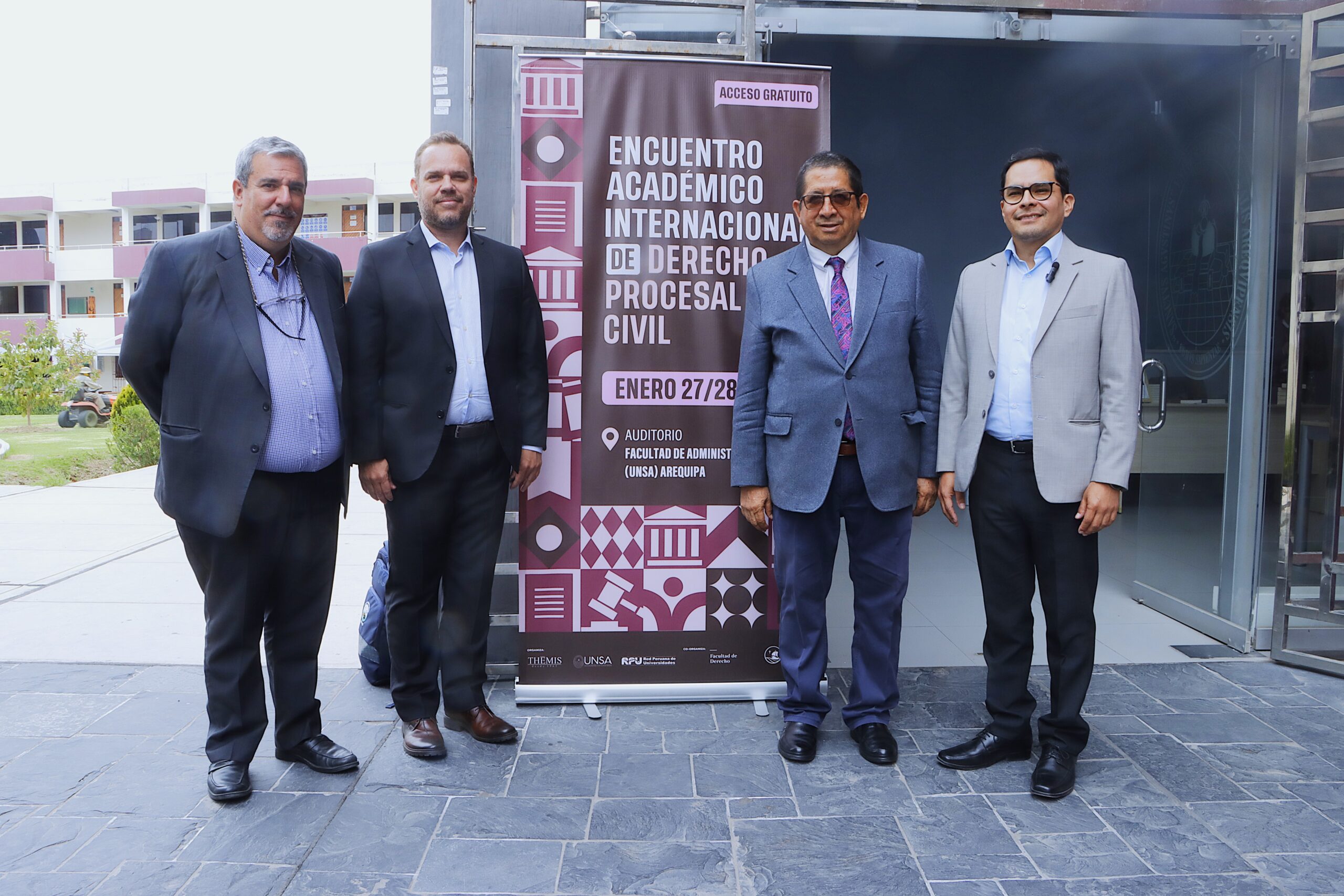La necesidad de fortalecer el Derecho Procesal Civil frente a escenarios de desinstitucionalización del Estado y crisis judicial motivó la realización del Encuentro Académico Internacional de Derecho Procesal Civil, que se desarrolla los días 27 y 28 de enero en la Universidad Nacional de San Agustín de Arequipa (UNSA), con la participación de destacados magistrados y docentes del Perú y Brasil.