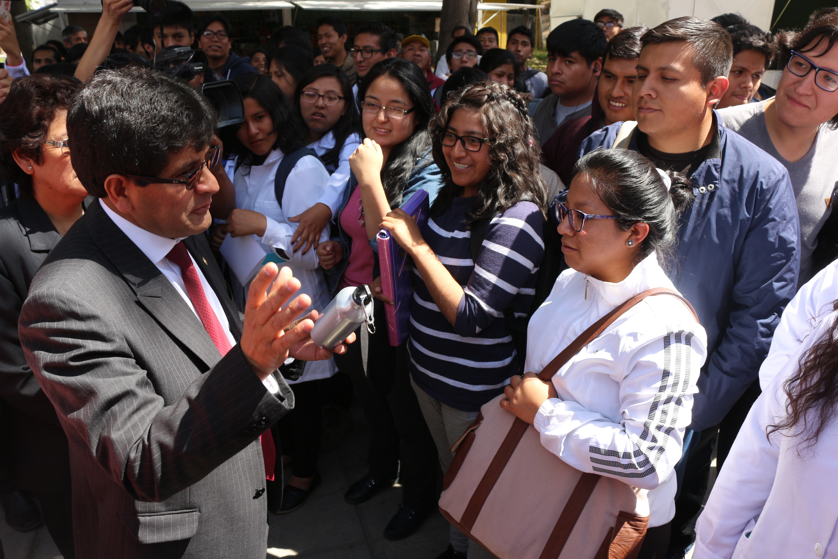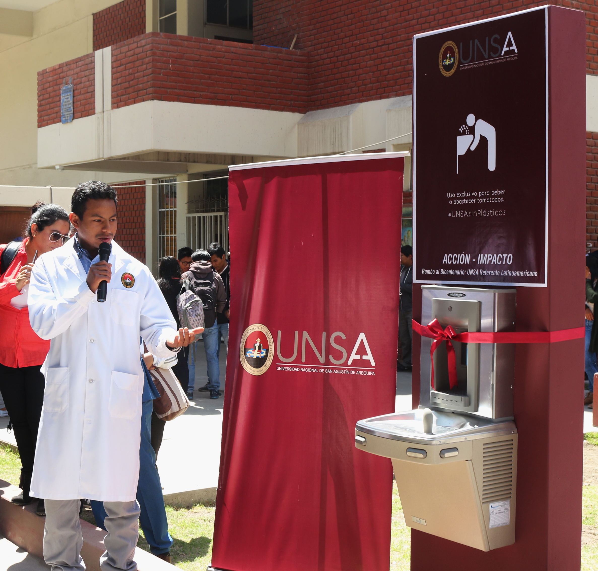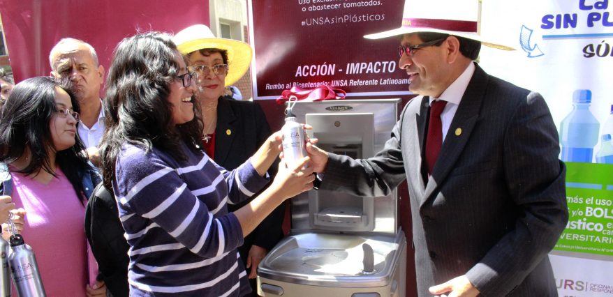 El Rector de la Universidad Nacional de San Agustín de Arequipa, Dr. Rohel Sánchez Sánchez la Vicerrectora Académica, Dra. Ana María Gutierrez Valdivia, inauguraron dispensadores de agua purificada en todas las áreas de la universidad, los mismos que podrán ser utilizados por la comunidad universitaria, especialmente por los jóvenes estudiantes.