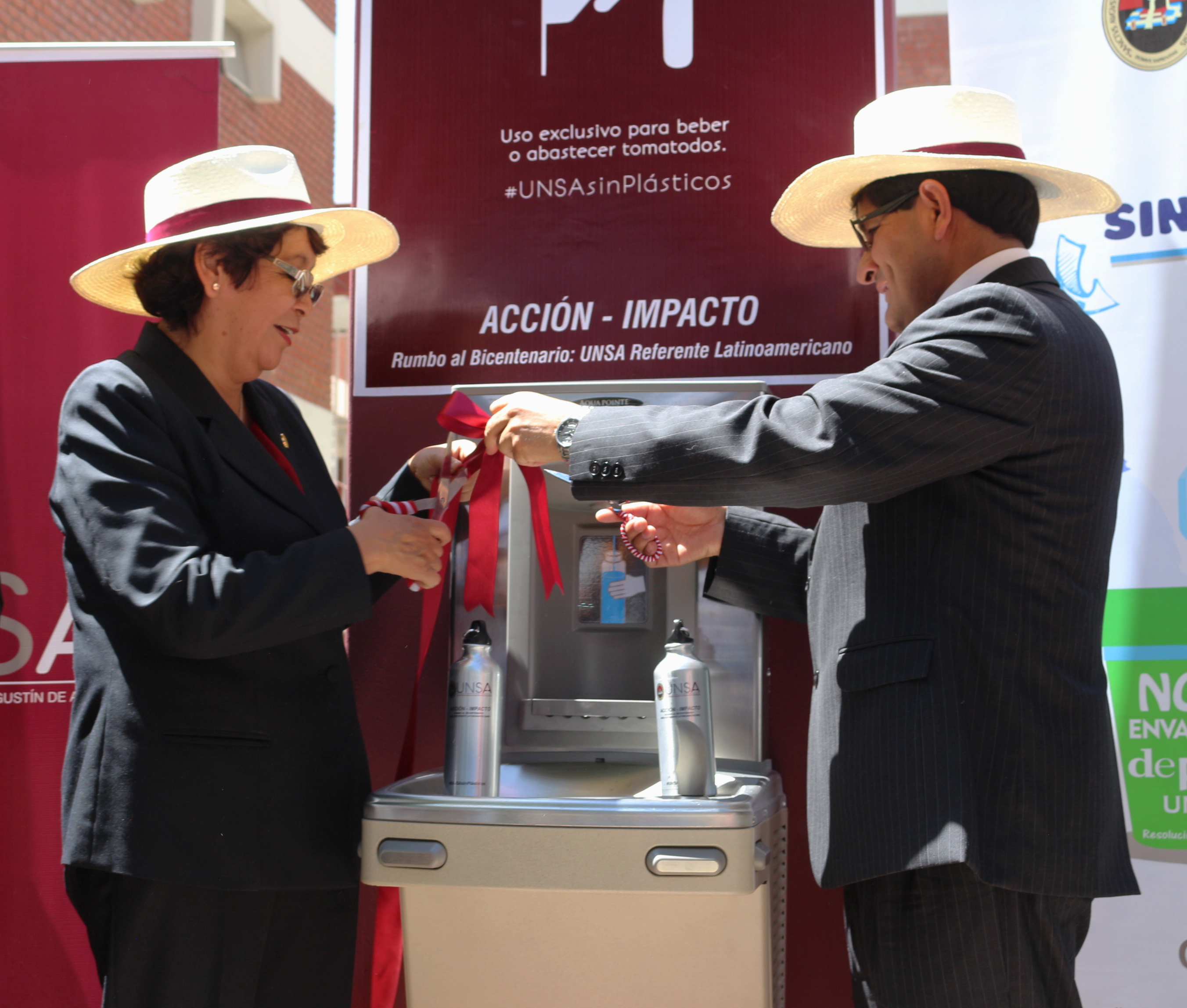 Rector y Vicerrectora Académica  inauguraron dispensadores de agua impulsando  la campaña #UNSAsinPlásticos.