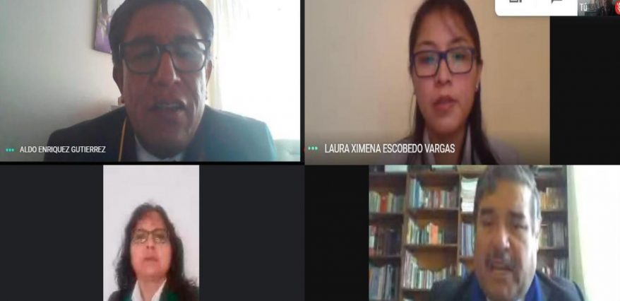 Utilizando la plataforma Google Meet y siguiendo el “Protocolo de sustentación de tesis no presencial de la UNSA” logró comunicarse con su jurado calificador integrado por los docentes Dr. Aldo Enríquez Gutiérrez, Dr. Hipólito Herrera Cáceres y CPC. Yolanda Zegarra Fernández, quienes aprobaron su exposición por unanimidad.