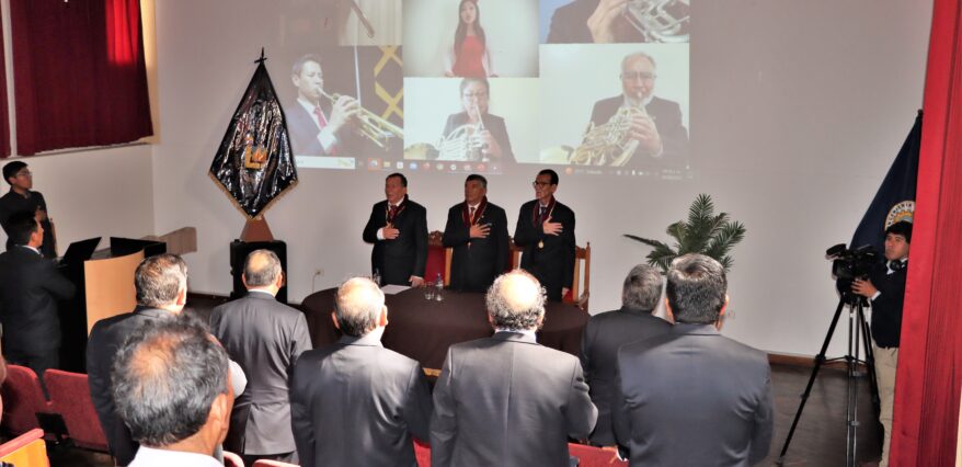 Autoridades, docentes y estudiantes participaron del evento realizado en el área de Ingenierías. El director de la Escuela Profesional de Ingeniería Metalúrgica, Dr. German Rodríguez Velarde, subrayó el esfuerzo conjunto de los docentes para lograr la acreditación por los próximos seis años.