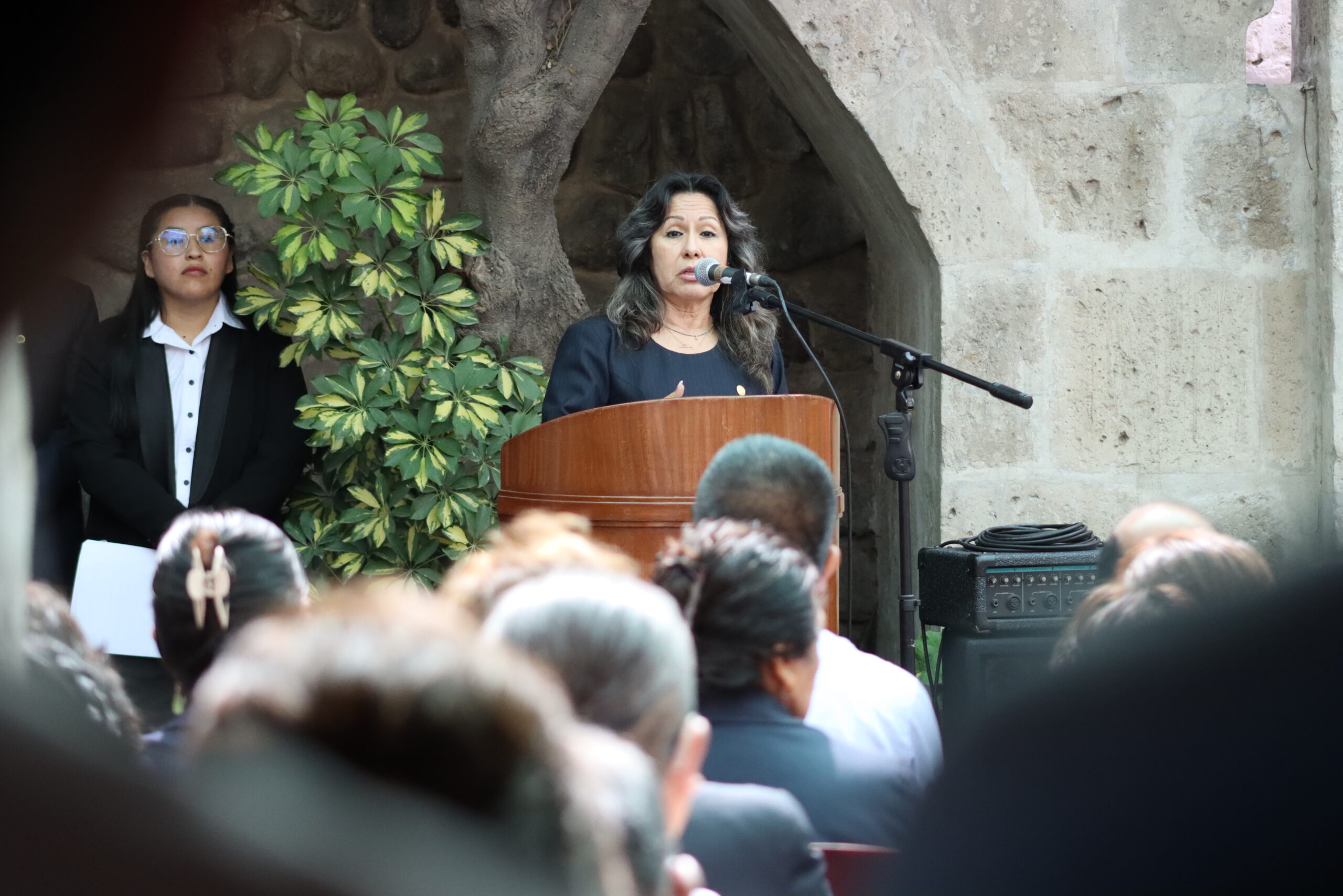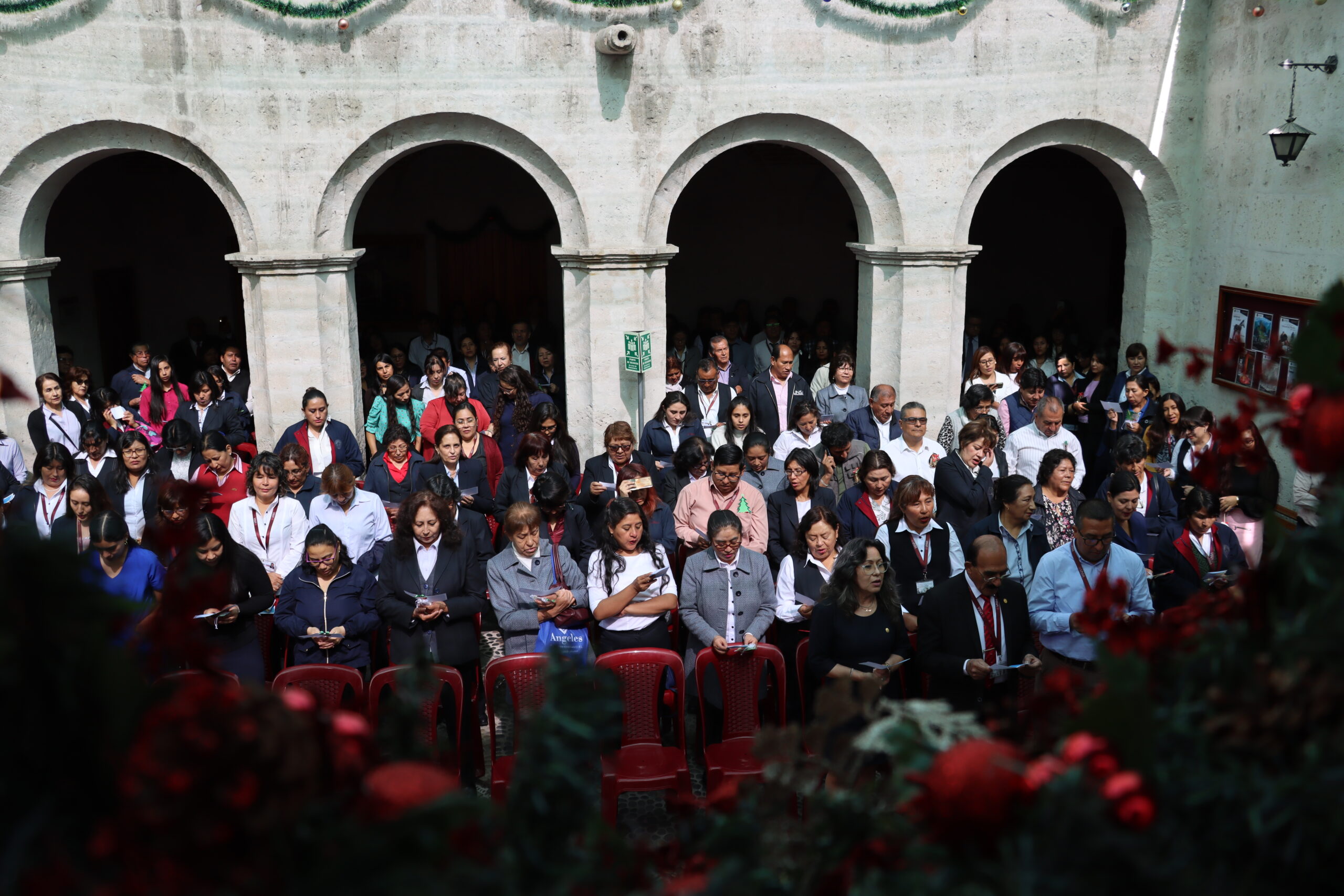 Este año la ceremonia fue organizada por la Subunidad de Abastecimientos, e inició con las palabras de la jefa de la Subunidad, María Adela Pinto Vilca; estuvieron presentes la secretaria general, Dra. Maritza Chirinos Lazo; el subdirector de infraestructura de la Casa Agustina, Ing. Maykol Álvarez Ardiles y el jefe de la oficina de Comunicación e Imagen, Dr. Alejandro Paredes Poblete.
