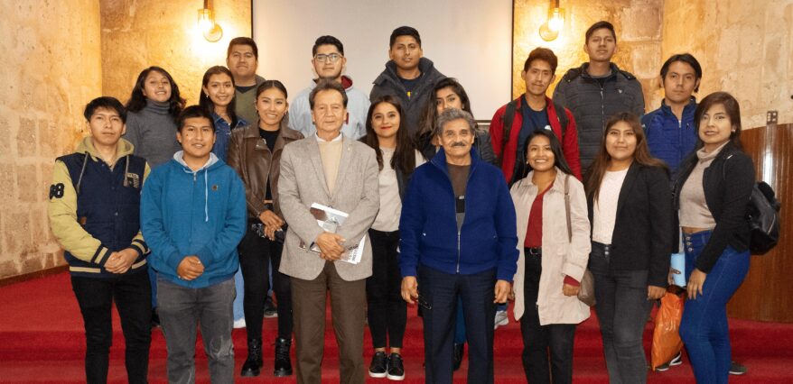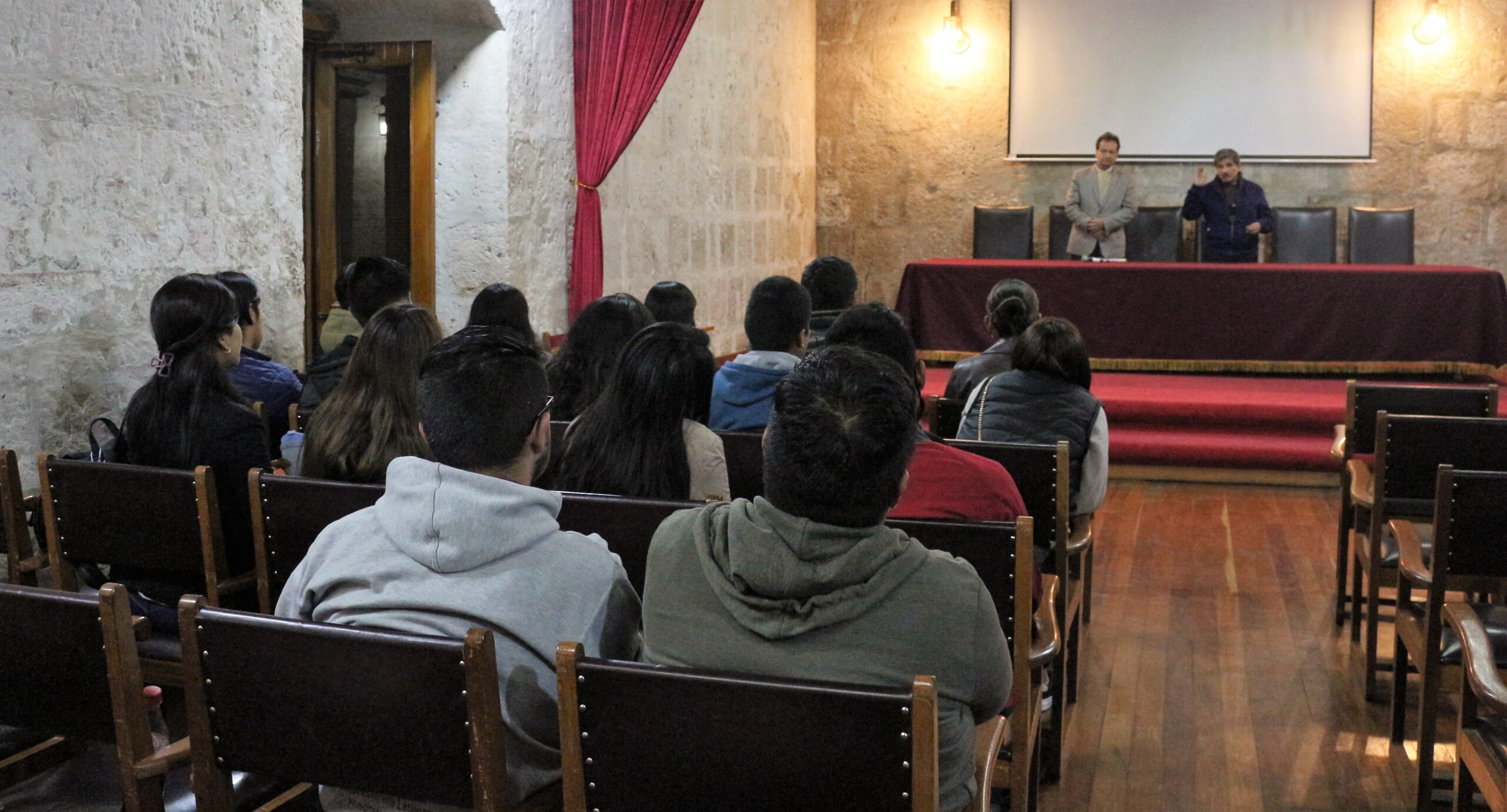 El rector de la Casa Agustina, Dr. Hugo Rojas Flores, y el Vicerrector Académico, Dr. Luis Cuadros Paz, encabezaron este conversatorio llevado a cabo en la sala Mariano Melgar de la UNSA. Este es el primer acercamiento del año para atender los pedidos de la comunidad agustina.