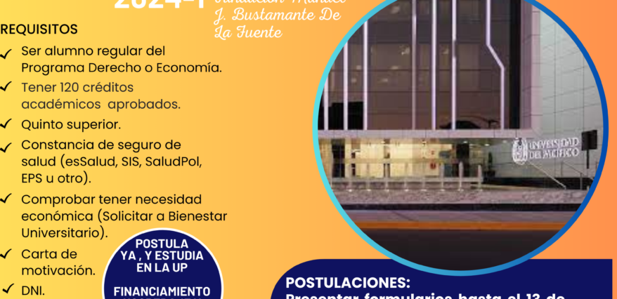 Alumnos agustinos, anunciamos que la Universidad del Pacifico a informado que la Fundación Manuel J. Bustamante De La Fuente otorgará 2 becas (S/. 5,200) para financiar los gastos por viáticos (alimentación y alojamiento) de participantes del programa PIE (presencial) que cumplan los siguientes requisitos: