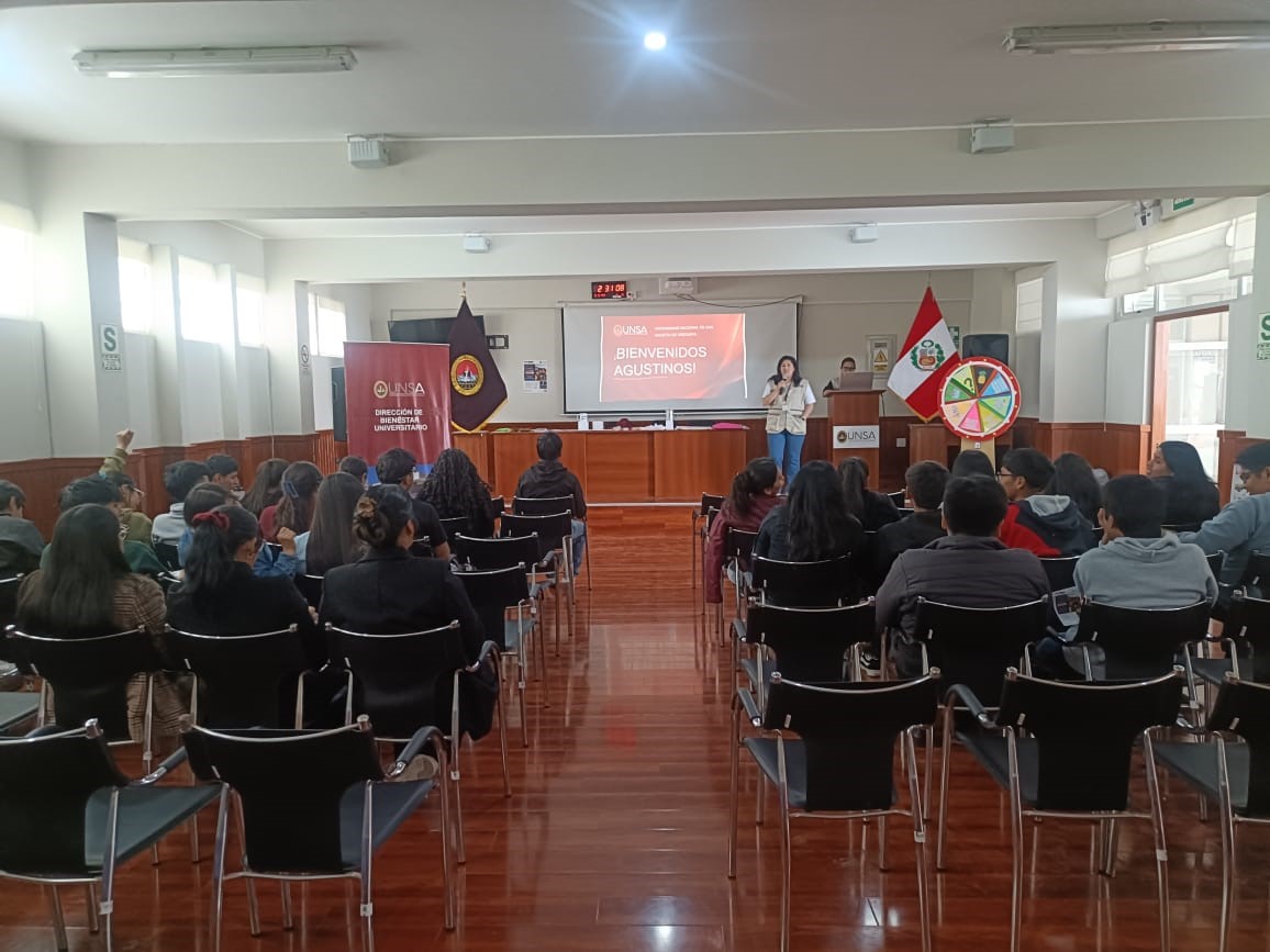 La actividad fue impulsada por la Universidad Nacional de San Agustín de Arequipa (UNSA), a través de la Dirección de Bienestar Universitario, que trasladó sus servicios hasta las filiales los días 22 y 23 de octubre. La Lic. Maribel Álvarez Barrios, de la Unidad de Desarrollo Estudiantil del Egresado y Graduado (UDEEG), presentó la oferta de programas de apoyo que brinda la DBU mediante sus unidades de Comedor Universitario, Salud y Psicopedagogía, Promoción de Arte, Cultura y Recreación, entre otros.