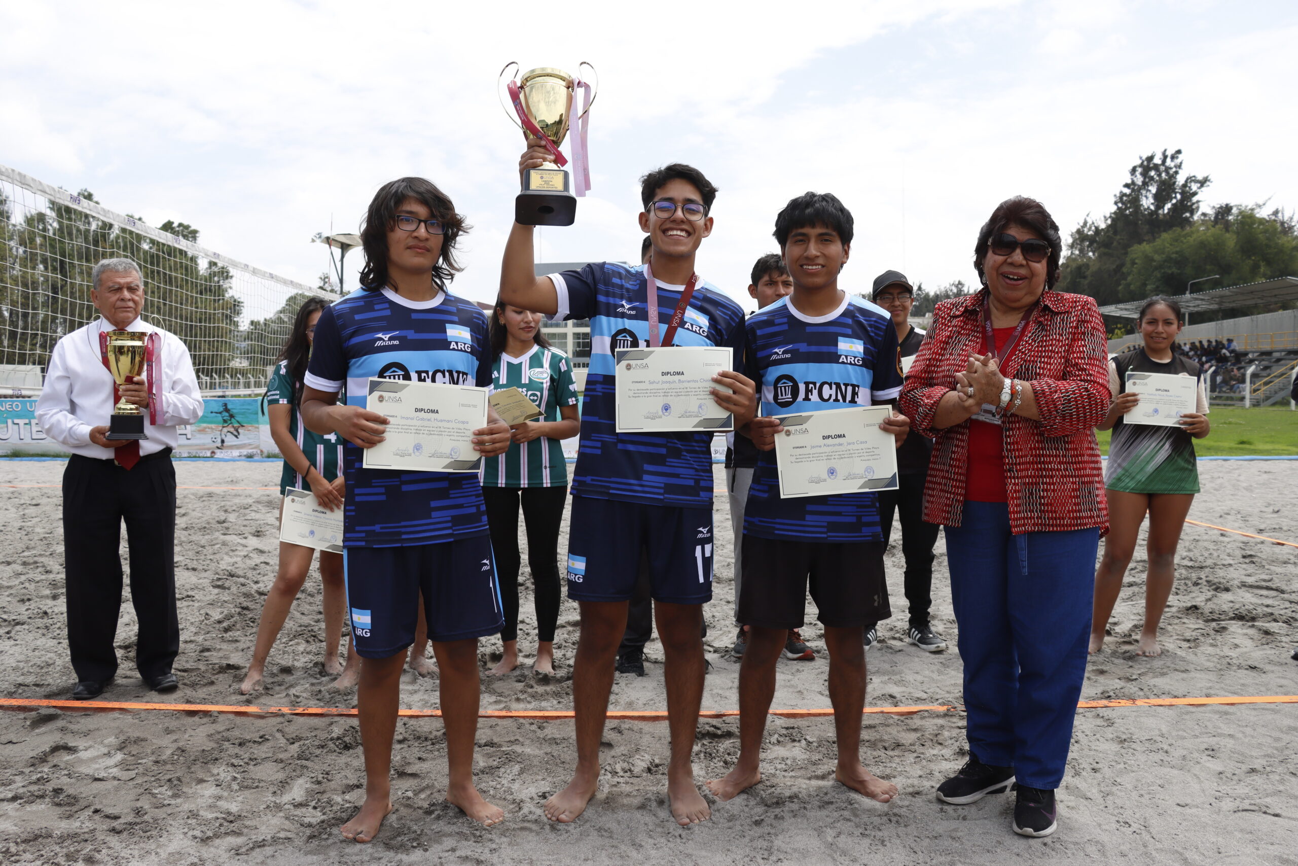 El Torneo Universitario de Verano 2025 llegó a su final con la emocionante definición del vóley playa. En la categoría femenina, el equipo del Programa de Biología se coronó campeón, mientras que en la masculina, Matemática logró el título. Los partidos decisivos se disputaron en un ambiente de alta competencia teniendo como escenario la cancha de arena del Ho Chi Minh, de la Universidad Nacional de San Agustín de Arequipa (UNSA).