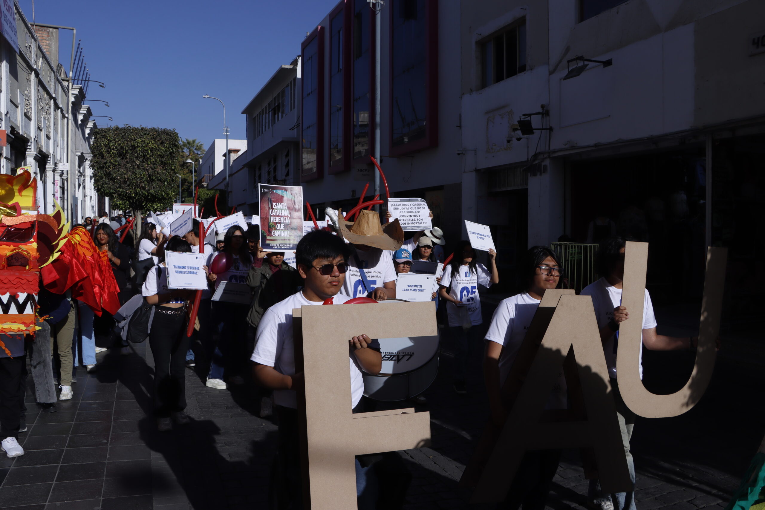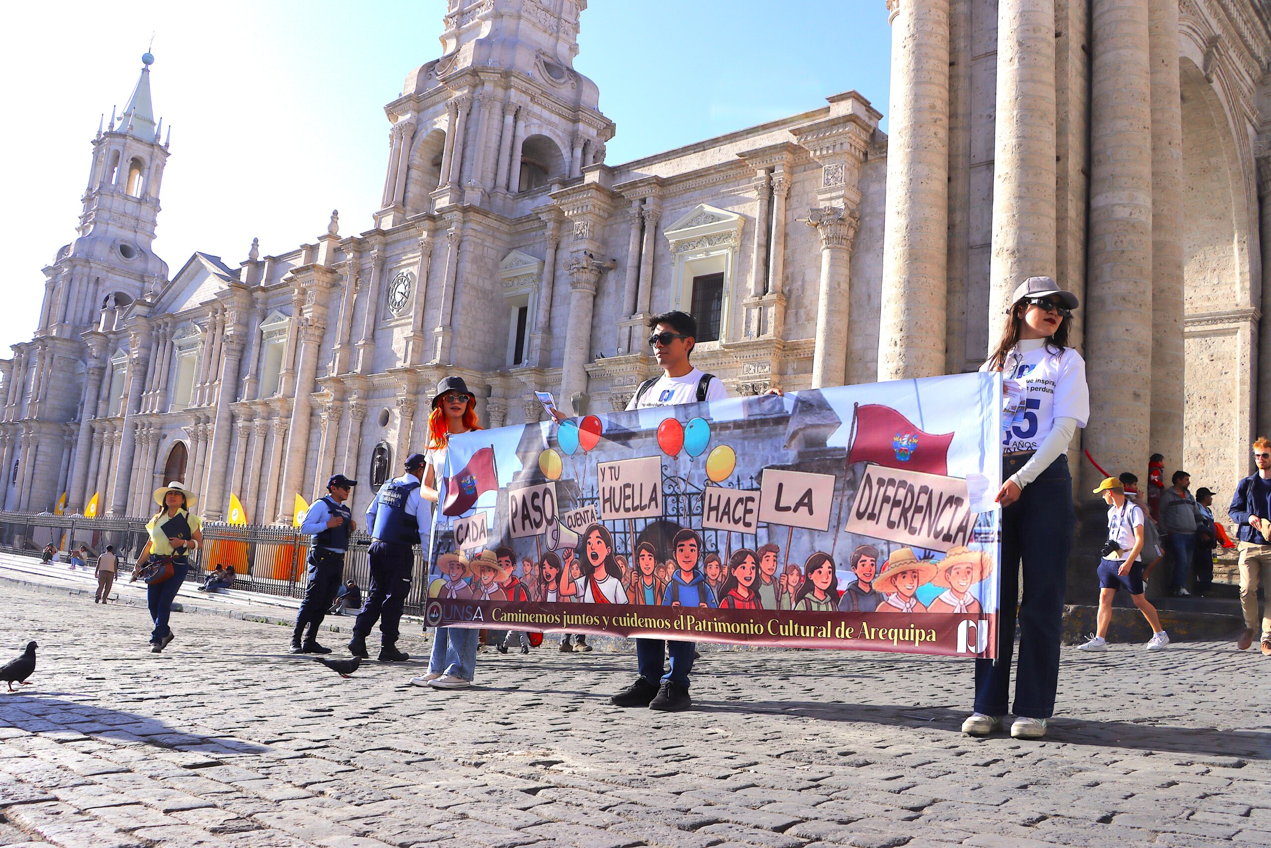 El Ministerio de Cultura organizó un pasacalle en el corazón del centro histórico de Arequipa para conmemorar los 25 años de su declaratoria como Patrimonio Cultural de la Humanidad por la UNESCO. La actividad reunió a estudiantes y docentes de siete facultades de Arquitectura de la ciudad, quienes rindieron homenaje a este hito que marcó un antes y un después en la valoración del patrimonio arequipeño.