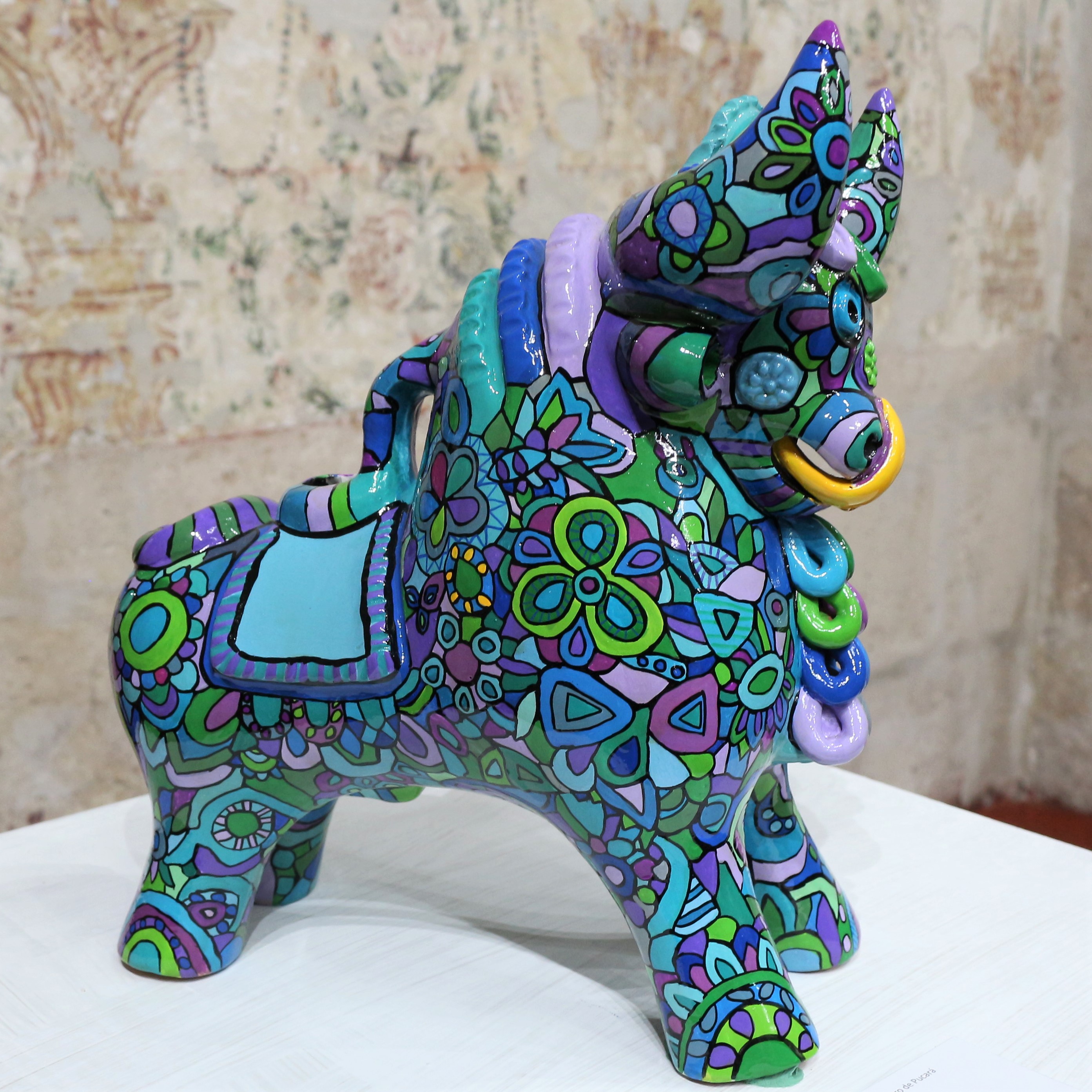 Esta exposición de toritos intervenidos, la artista nos presenta su obra  marcada por la búsqueda de la armonía del color y de ese camino que vamos transitando todos hacia el autoconocimiento.