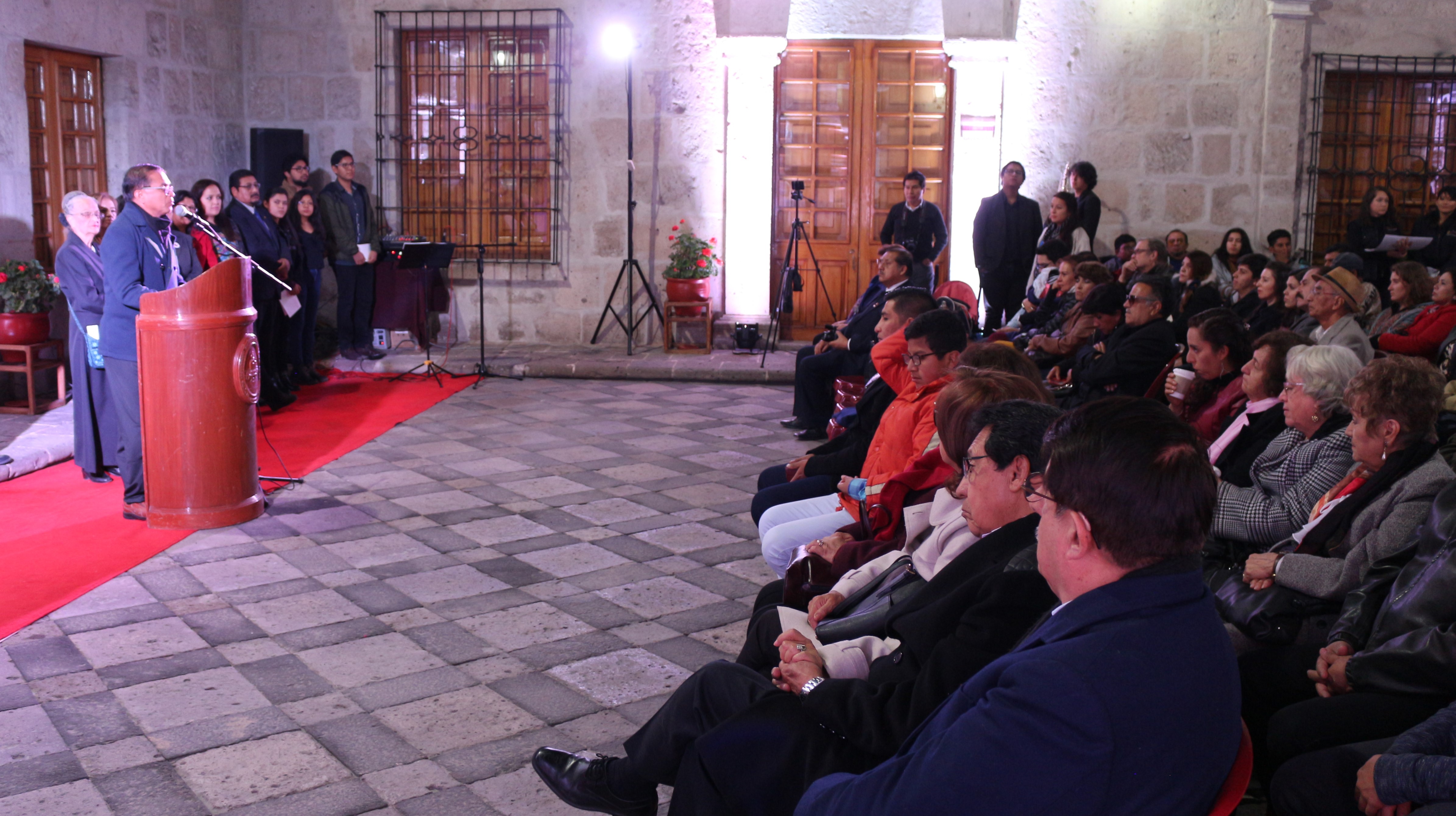 Explicó que en esta oportunidad la UNSA rinde un merecido homenaje al desaparecido maestro arequipeño Enrique Urizar en reconocimiento a su obra y arduo trabajo que se exhibe en la Galería 1.