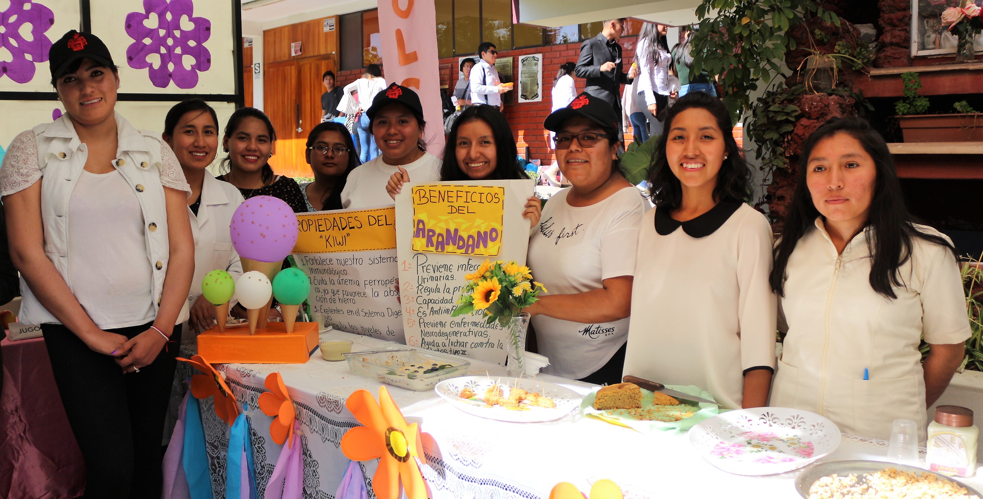 La Mg. Ángela Lavalle Gonzales, docente de esta carrera, señaló que este espacio de exposición tiene como finalidad brindar alternativas de consumo saludable utilizando los productos de la región que en su elaboración estén libres de preservantes, colorantes y otras sustancias químicas, así como alimentos nutritivos para combatir la anemia.