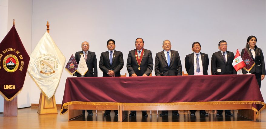 La Sesión Solemne estuvo presidida por el Dr. Horacio Barreda Tamayo, Vicerrector de Investigación y contó con la participación del Dr. Benjamín Dávila Flores, Decano de la Facultad de Ciencias Biológicas, Dr. Frankling Barreto Gómez, Director de la Escuela Profesional de la Nutrición, Mg. Daniel Valencia Ponze, Director de la Escuela Profesional de Ingeniería Pesquera, Dr. Antonio Lazarte Rivera, Director de la Escuela Profesional de Biología, Mg. Huber Supo, Decano del Colegio Profesional de Nutricionistas Consejo Regional VI Arequipa, docentes, personal administrativo, estudiantes e invitados.