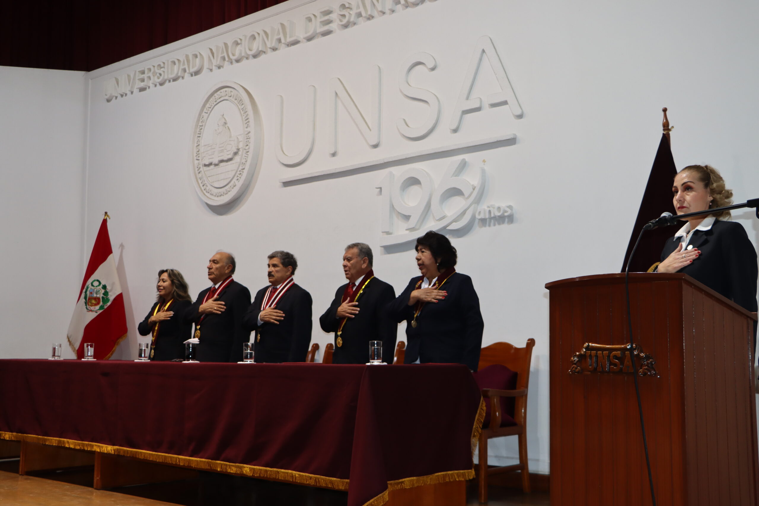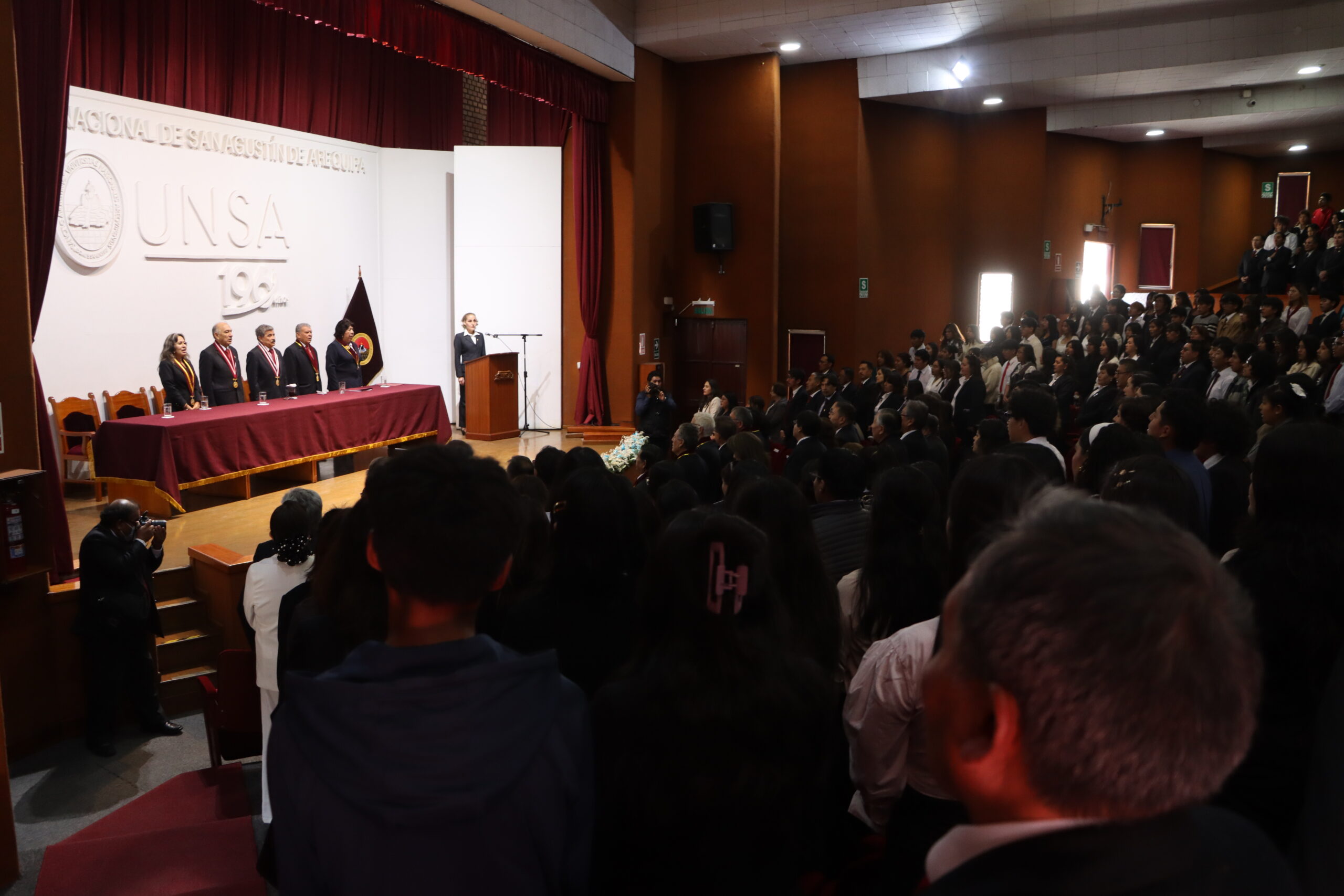 El rector de la UNSA, Dr. Hugo Rojas Flores, participó en la ceremonia y felicitó a la facultad por su destacada labor. En su intervención, enfatizó la importancia de la investigación como herramienta fundamental para comprender y transformar la realidad social, instando a los estudiantes a contribuir activamente en la difusión de la rica historia e identidad de Arequipa.