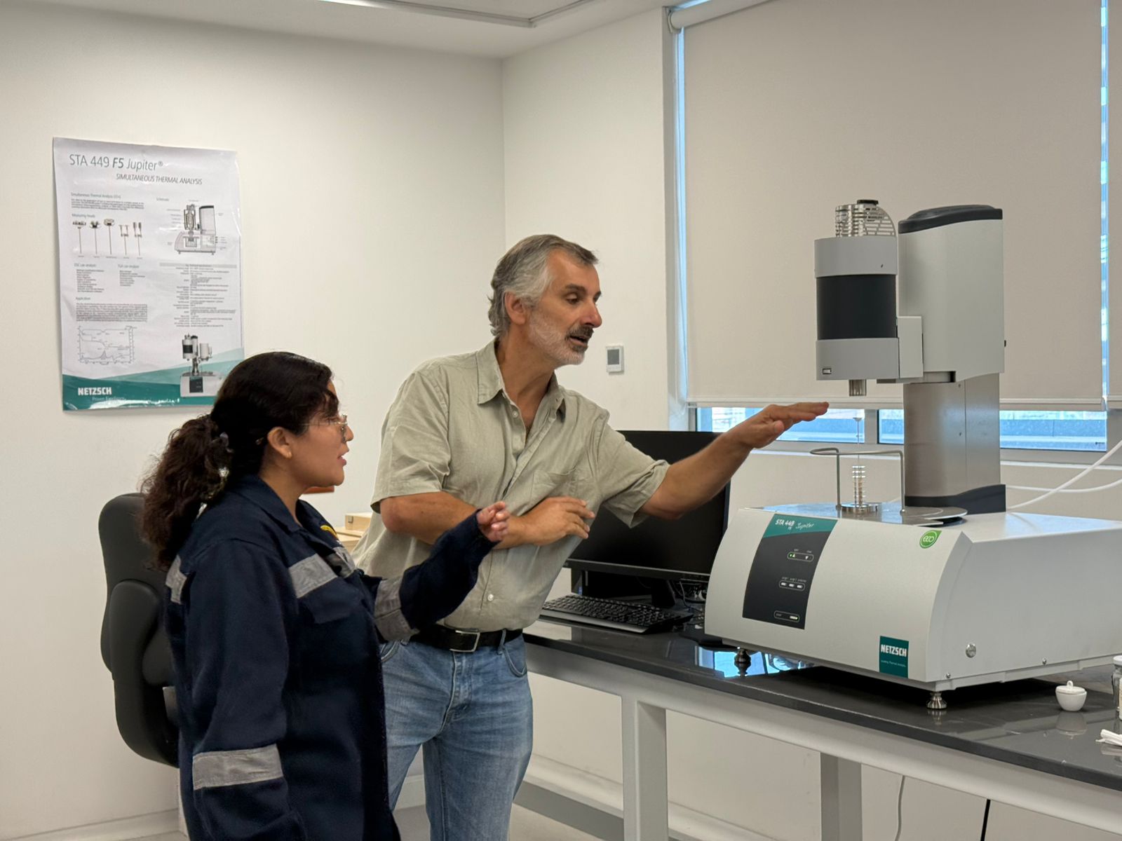 Pero la contribución del Dr. Jachmanián Alpuy trascendió las aulas. Lideró sesiones prácticas, realizando análisis experimentales y guiando al equipo en la implementación de nuevos métodos cromatográficos y en la interpretación precisa de los resultados. Además, su ojo experto evaluó la operatividad de equipos como los de espectroscopía NIR y el sistema de encapsulación, ofreciendo recomendaciones técnicas vitales para su optimización.