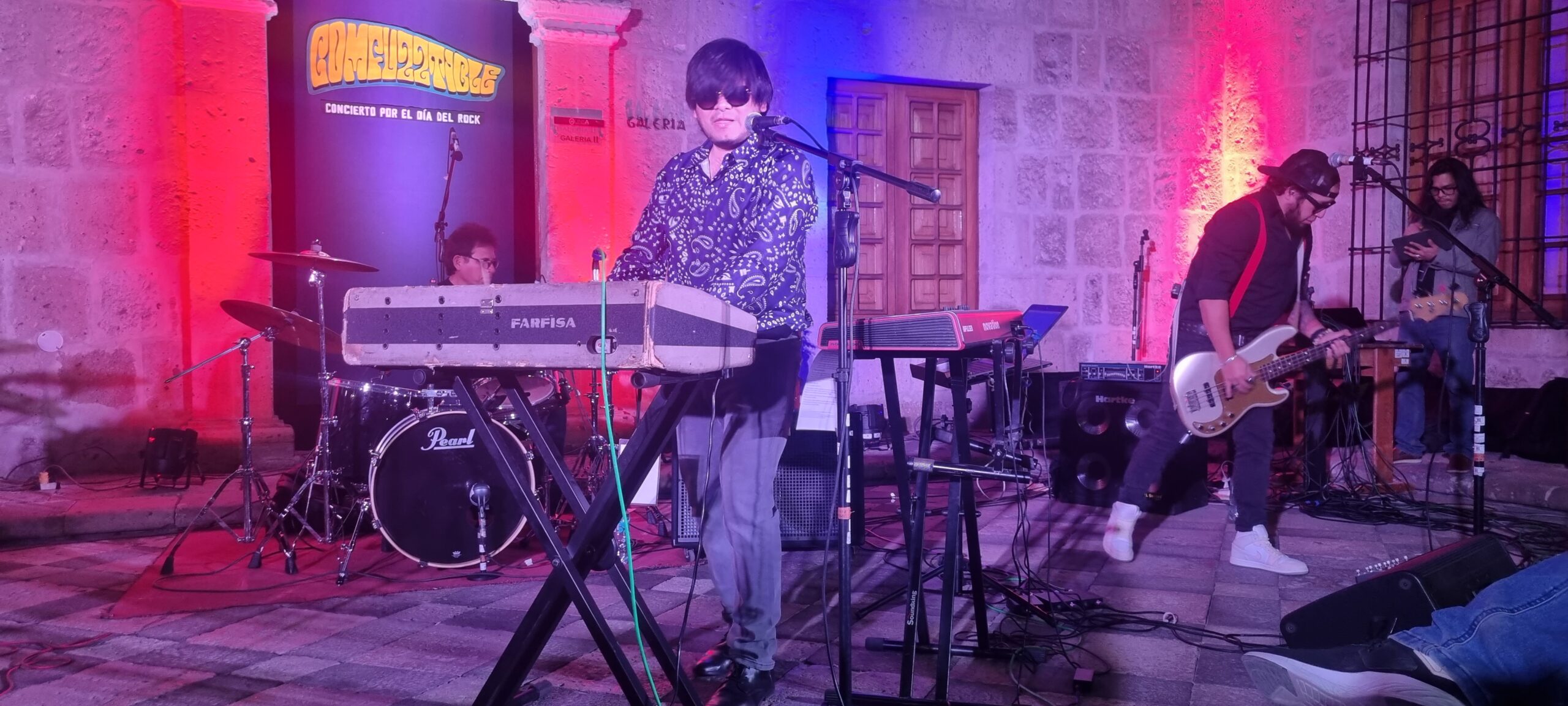 La banda arequipeña COMFUZZTIBLE celebró 20 años de trayectoria musical con un concierto memorable en el Centro Cultural de la UNSA, como parte de las celebraciones del Mes del Rock. La agrupación, conformada por Piero Chávez Velando (voz y teclados), Víctor Abarca (guitarra), Joaquín Castañón (bajo) y Coco Herrera (batería), ofreció un espectáculo cargado de energía y nostalgia, transportando a los asistentes a un viaje sonoro a través de sus dos décadas de historia y los años gloriosos de la psicodelia y el rock de garage norteamericano.