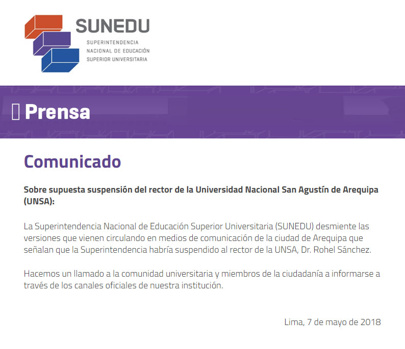 Email: rectorado@unsa.edu.pe