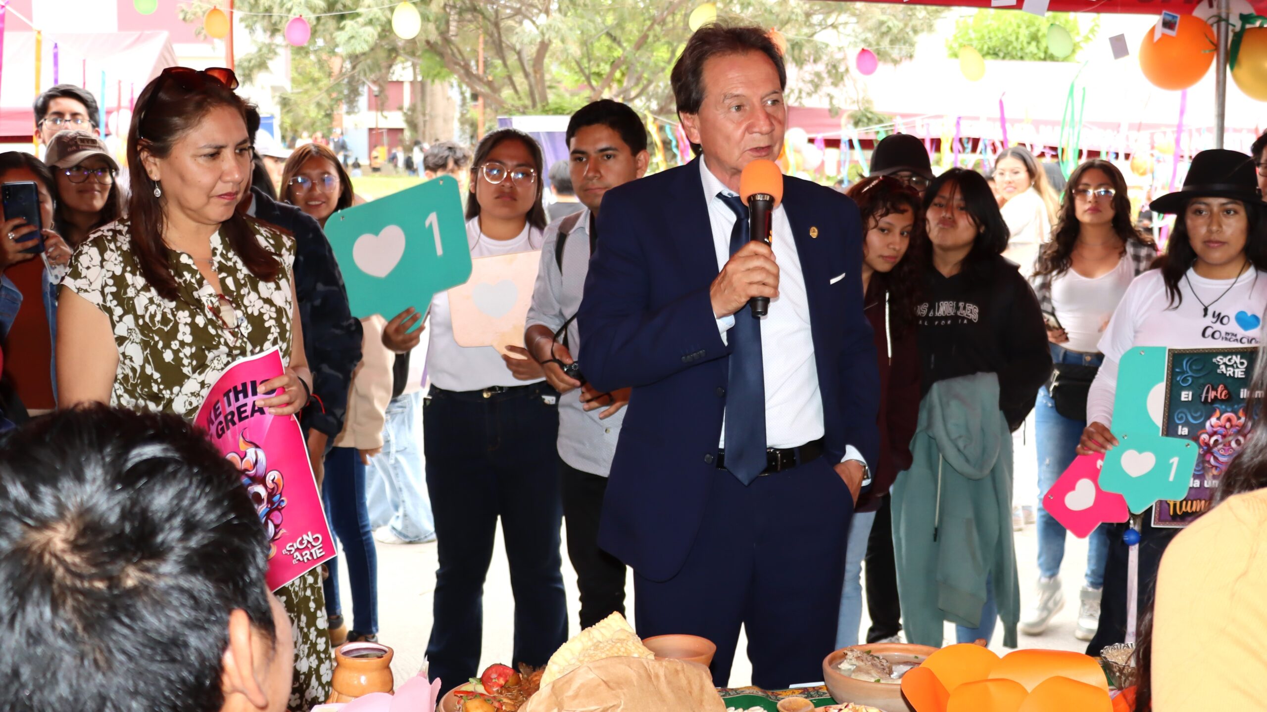 El Dr. Luis Cuadros Paz, vicerrector académico, visitó el festival y conversó con los estudiantes de la Escuela Profesional. Felicitó su iniciativa y les habló sobre la gran responsabilidad que tienen como futuros comunicadores sociales, disciplina fundamental para mantener buenas relaciones entre personas y grupos humanos.