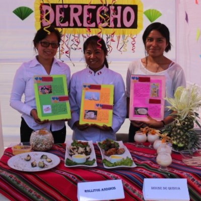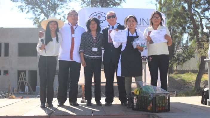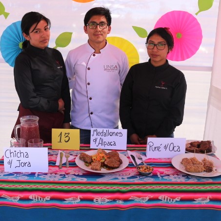 Estudiantes beneficiarios del Comedor presentaron innovadores platillos a base de productos andinos y expusieron sus propiedades nutricionales en los diferentes stands, presentaron desde ceviche de trucha, pollo enrollado, medallones de alpaca y diferentes postres.