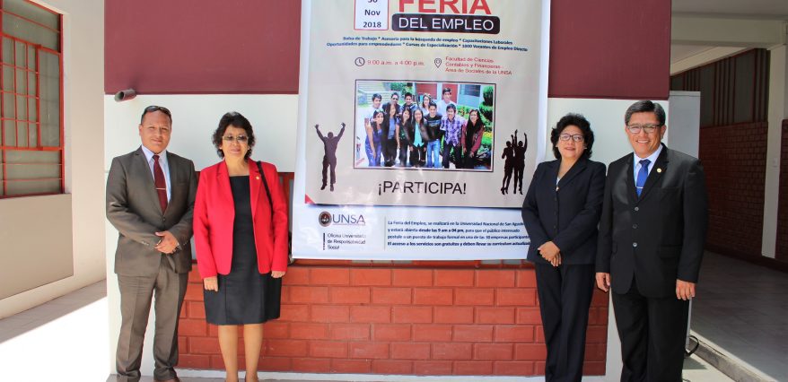 Con la finalidad de brindar oportunidades de empleo a los jóvenes para que puedan insertarse en el mercado laboral e iniciar sus prácticas pre profesionales y profesionales, la Universidad Nacional de San Agustín de Arequipa a través de la Oficina Universitaria de seguimiento al egresado y bolsa de empleo, con el apoyo de la Oficina Universitaria de Responsabilidad Social, la Gerencia Regional de Trabajo y Promoción del Empleo y la Coordinación Parlamentaria de Universidades Públicas del Congreso de la República, se realizó la II Feria del Empleo en las instalaciones de la Facultad de Ciencias Contables y Financieras de la casa agustina.