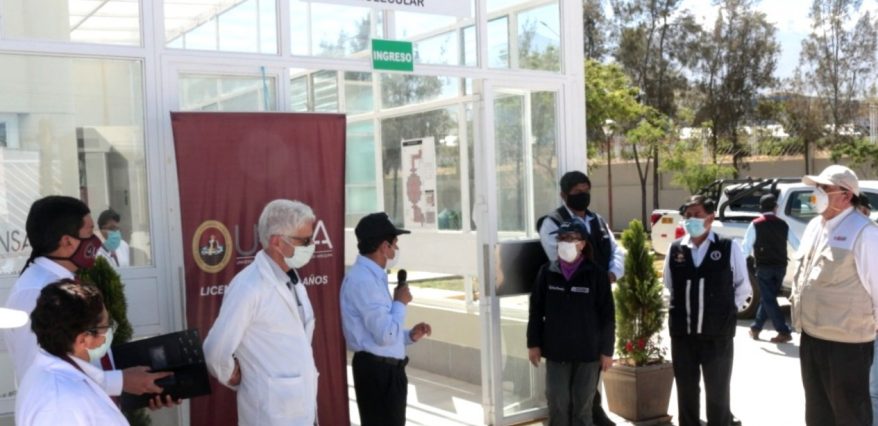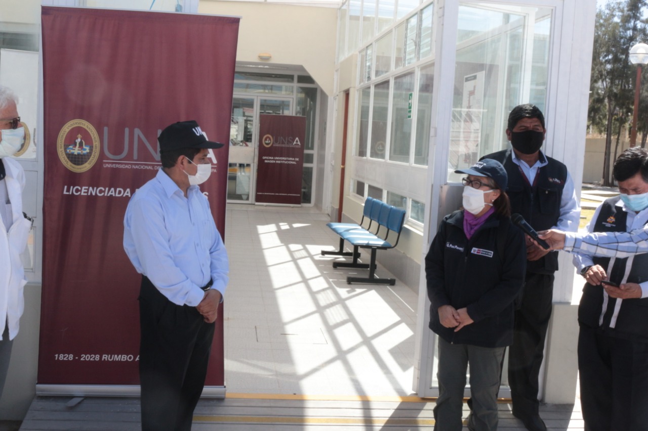 A su llegada al nosocomio, la funcionaria de salud fue recibida por el Rector de la UNSA, Dr Rohel Sánchez Sánchez, quien le informó sobre las acciones desarrolladas por la universidad para hacer frente al COVID 19, sumándose a los esfuerzos y estrategias nacionales.
