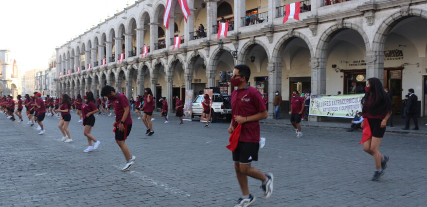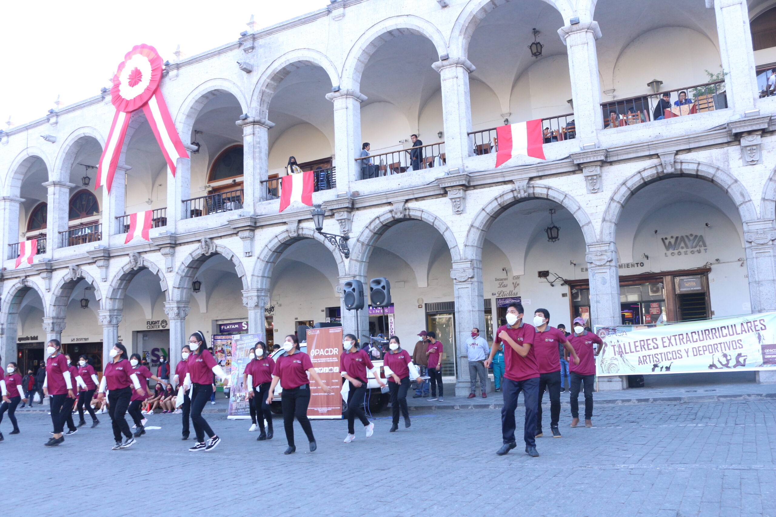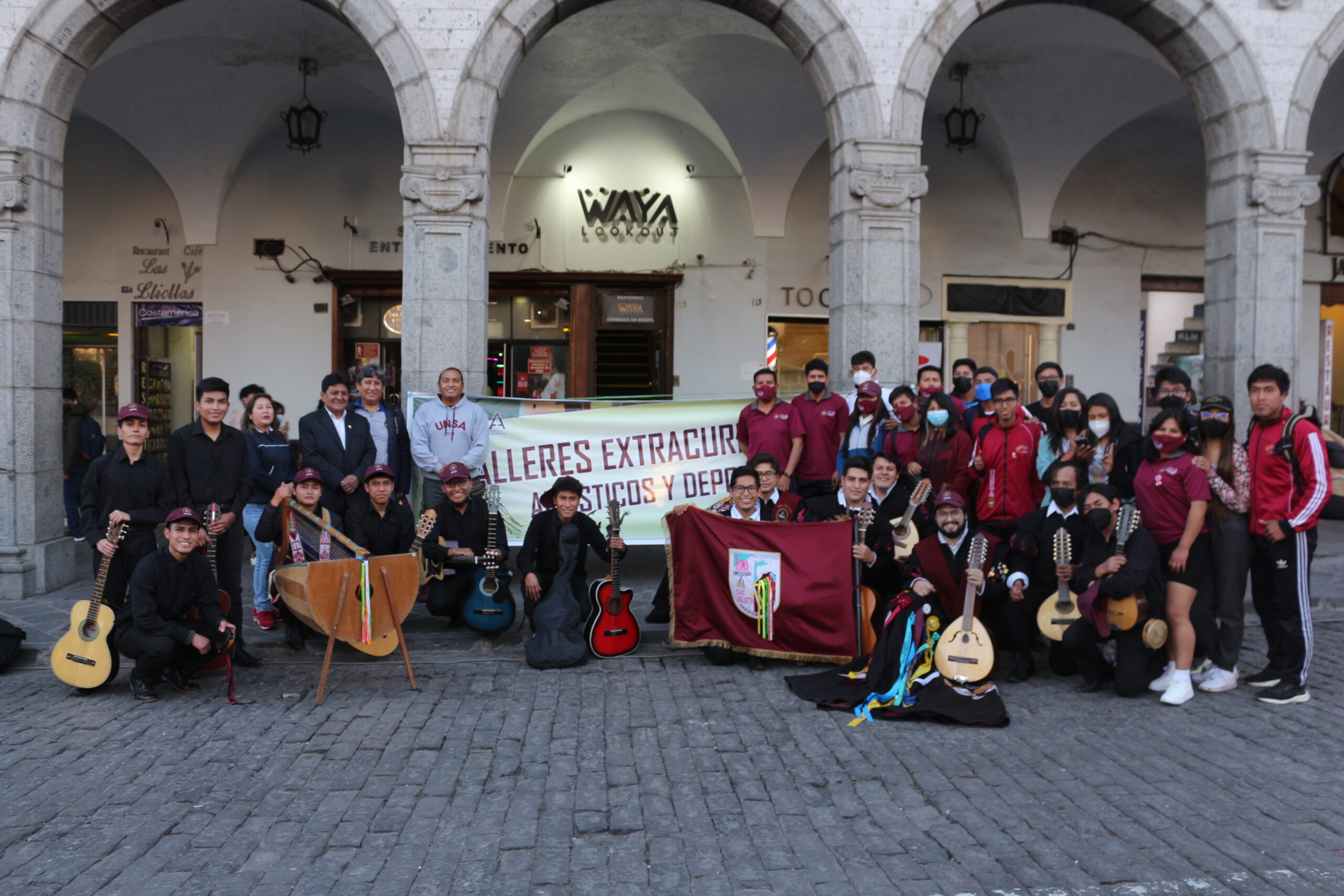 Con una presentación en la Plaza de Armas, la Universidad Nacional de San Agustín de Arequipa clausuró los talleres extracurriculares de actividades Artísticas y Deportivas correspondientes a los meses de mayo y julio.