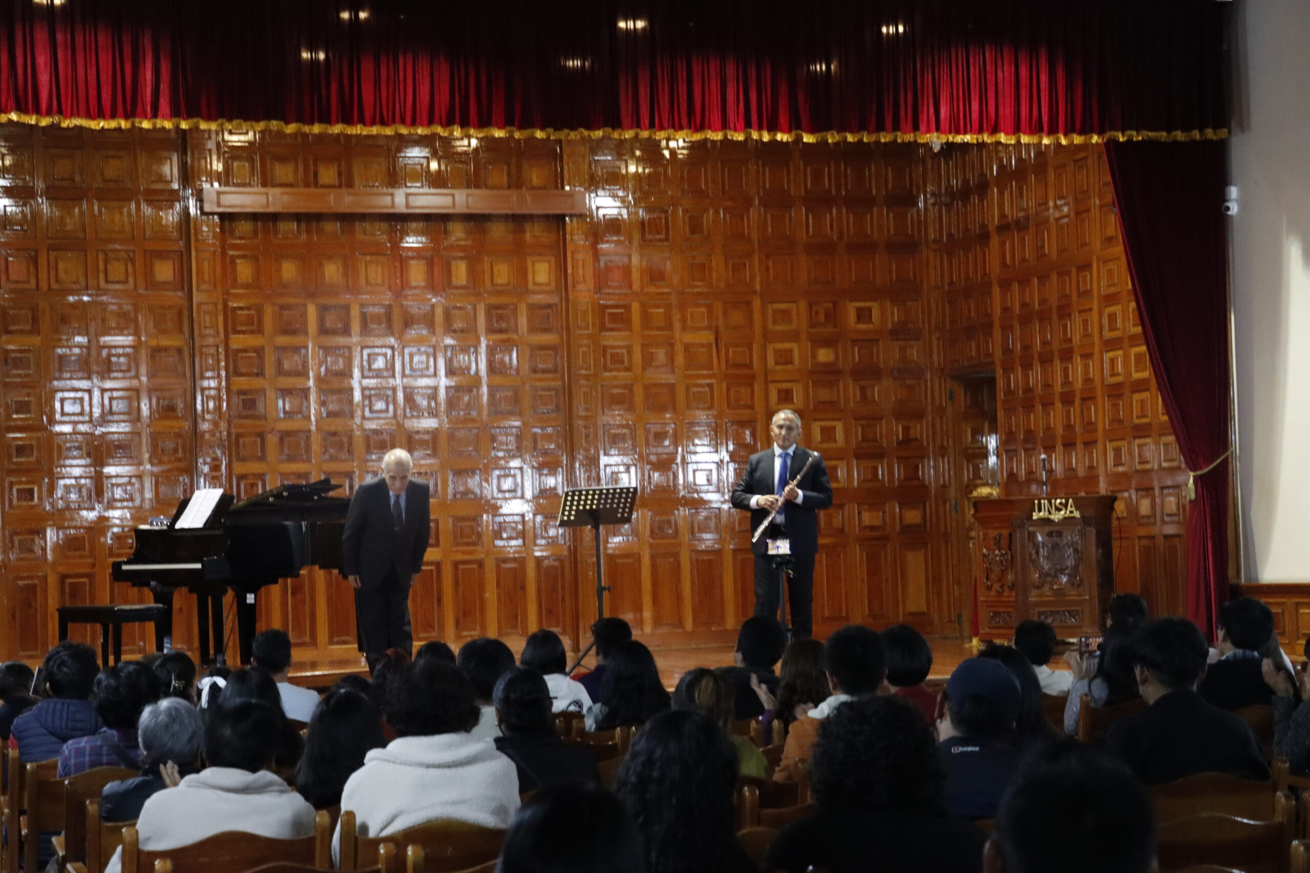 Un recital de flauta traversa y Piano fue organizado por la Escuela Profesional de Artes de la Universidad Nacional de San Agustín de Arequipa (UNSA). El público en general, estudiantes y artistas, se dieron cita en el Paraninfo Arequipa de la calle San Agustín.