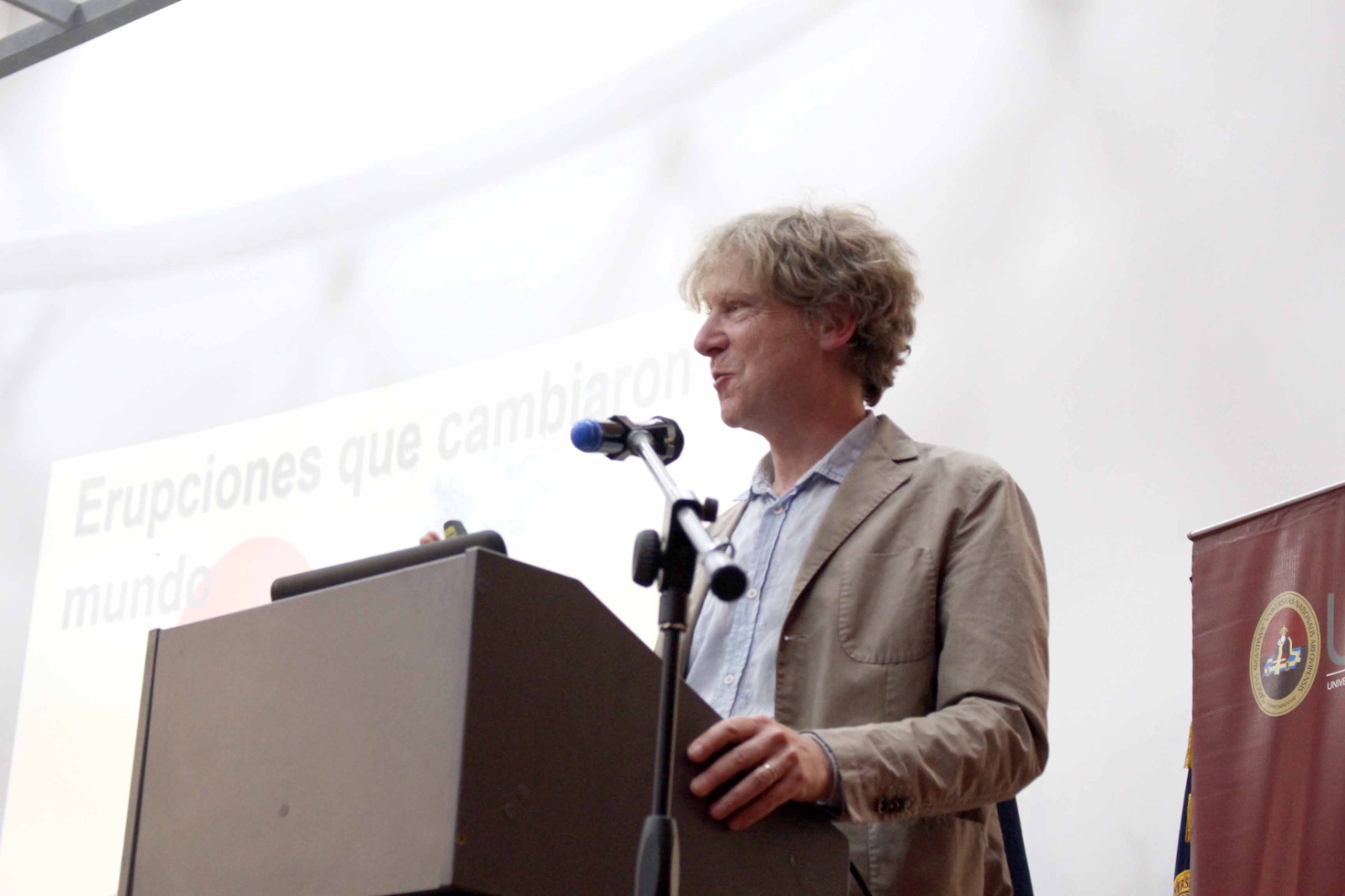 El Dr. Oppenheimer, profesor de vulcanología en el Departamento de Geografía de la Universidad de Cambridge, visitó Arequipa para compartir sus conocimientos sobre los procesos volcánicos, sus riesgos y su impacto climático y social a lo largo de la historia. Su presentación, en inglés con traducción simultánea, incluyó el comportamiento de volcanes arequipeños como el Misti y el Huaynaputina (Moquegua), entre otros.
