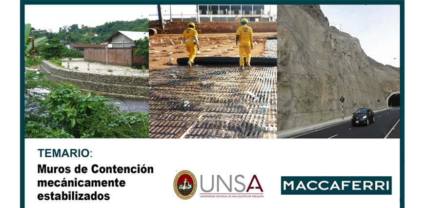 MACCAFERRI invita a los alumnos de nuestra comunidad universitaria, a participar de la conferencia: “Muros de Contención Mecánicamente Estabilizados”, que se realizará este viernes 14 de setiembre a las 12:00 del mediodía, en el auditorio N°2 de la Facultad de Ingeniería Civil de la UNSA.