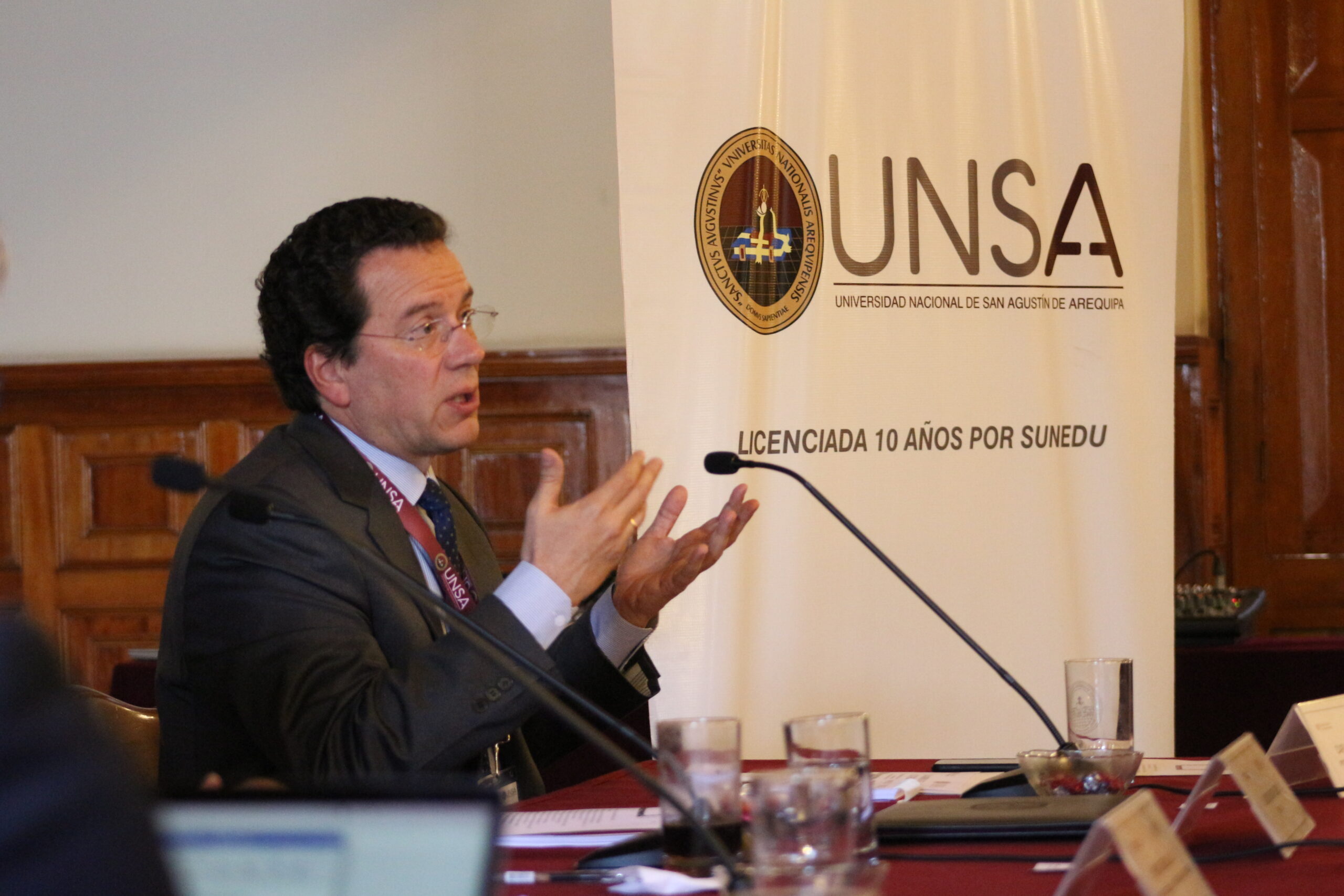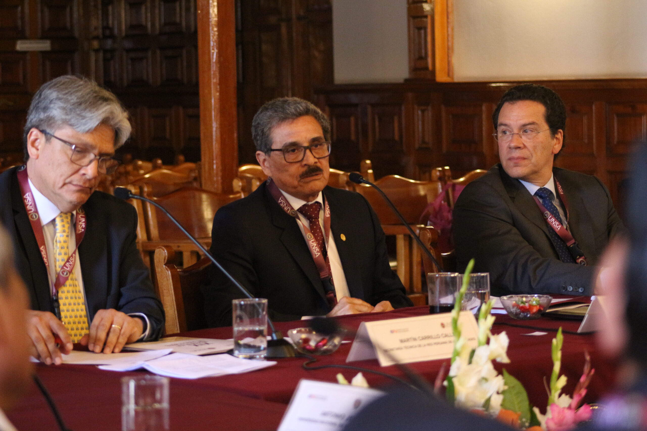 Estuvieron al frente de la reunión el rector de la UNSA, Dr. Hugo Rojas Flores, el Rector de la Pontificia Universidad Católica del Perú y presidente de la RPU, Dr. Carlos Garatea Grau, y de la Secretaria Técnica, Dr. Martín Carrillo Calle.