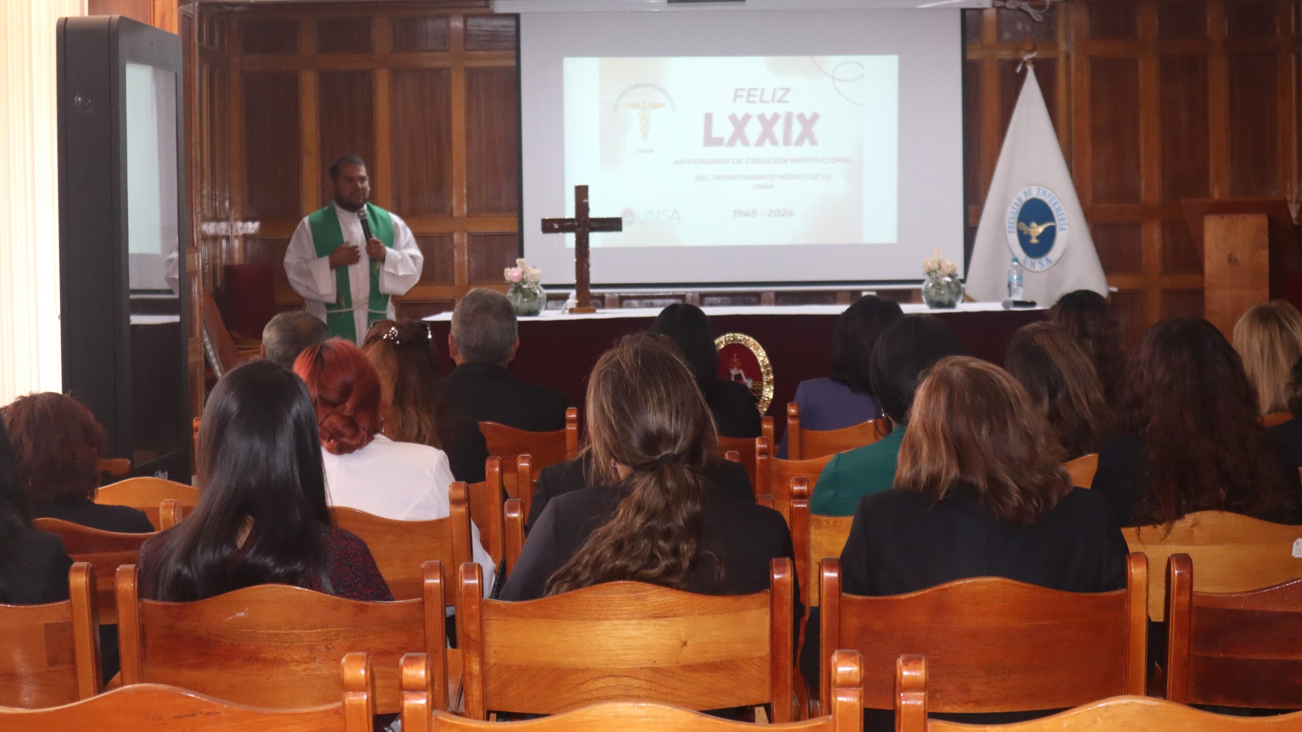 Cabe resaltar que, durante los actos conmemorativos del aniversario celebrados en la sala de grados de la Facultad de Enfermería, se llevaron a cabo una paraliturgia de acción de gracias y una sesión solemne con la presencia de todo el personal que labora en las diversas áreas, filiales y en la sede de Río Seco.