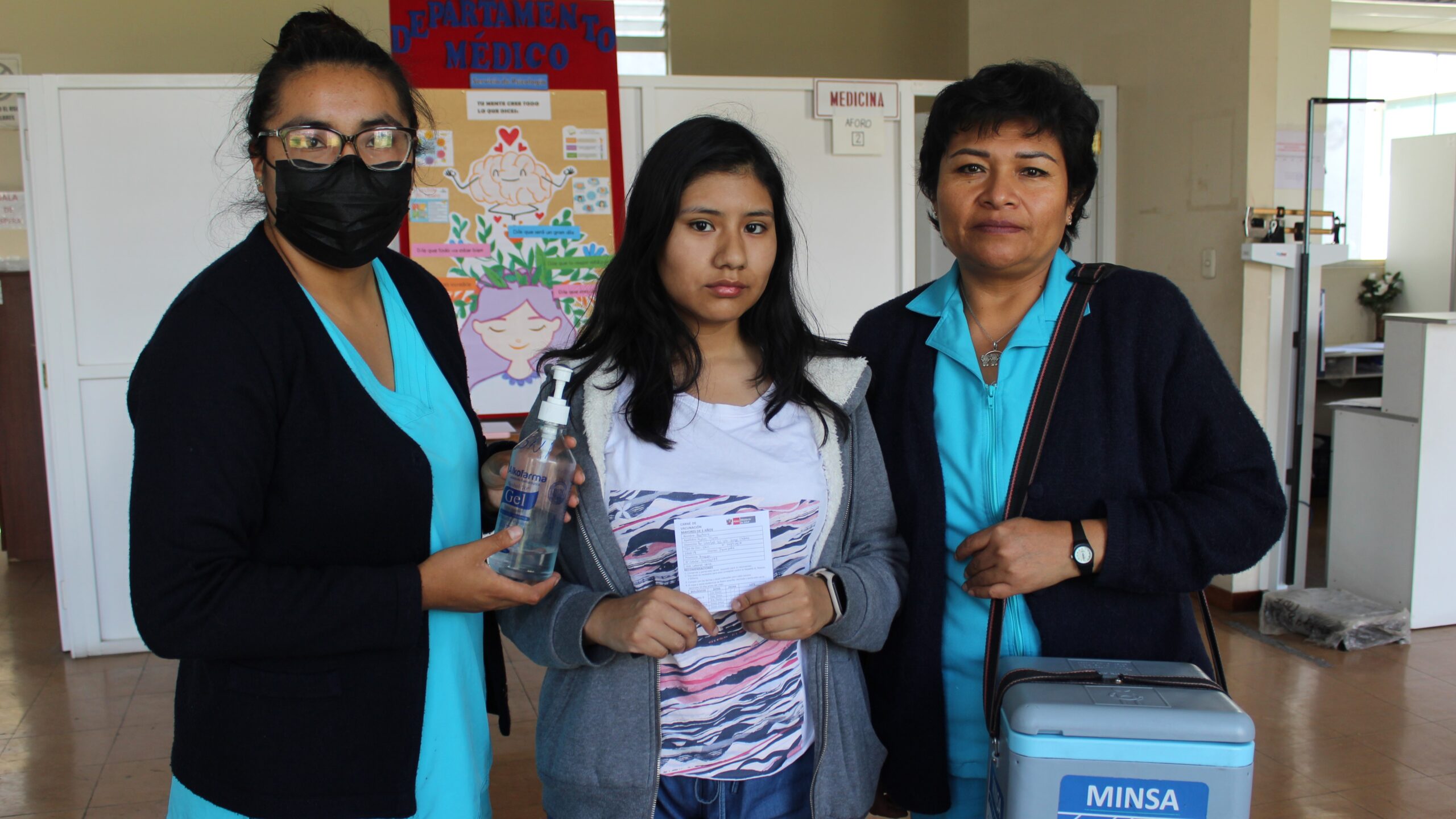Un equipo de enfermeras del establecimiento de salud brindó la atención con todos los protocolos de bioseguridad a estudiantes, docentes y personal administrativo de la casa agustina, que acudieron desde tempranas horas para aplicarse las dosis.