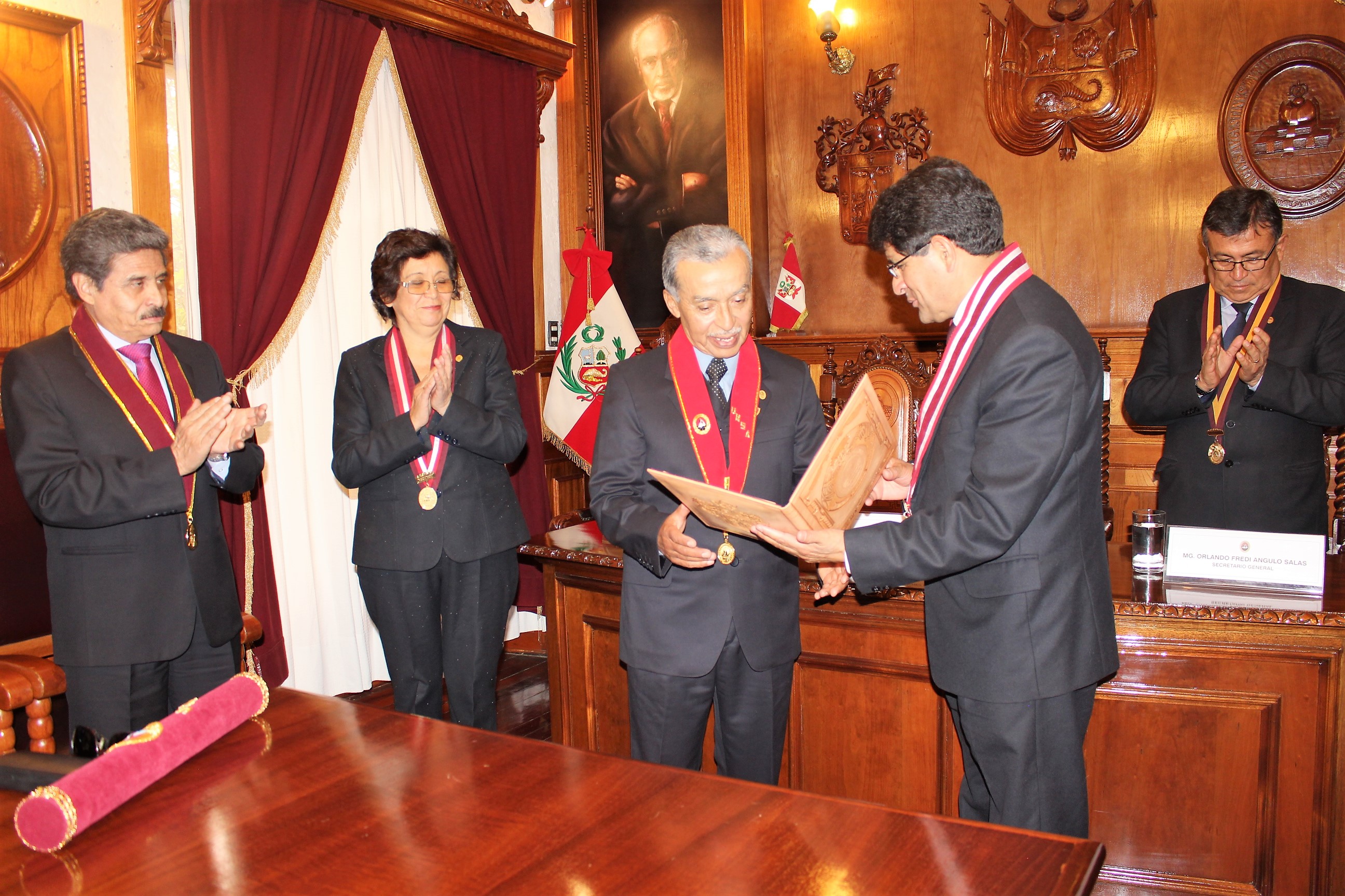El Rector del claustro agustino, destacó que con la nueva Ley Universitaria N° 30220 y los Estatutos de la Universidad, no es fácil otorgar esta distinción, la cual sólo se entrega a docentes que durante su cátedra han contribuido al desarrollo de la institución, por lo cual, el Consejo Universitario no tuvo ningún reparo para otorgar esta distinción al Dr. Edgar Rivera, señaló además que complace mucho a esta gestión incorporar académicos que con el devenir del tiempo han venido calando un modelo de vida, un modelo de docencia que cumple las funciones de la Universidad en la formación integral de sus estudiantes.