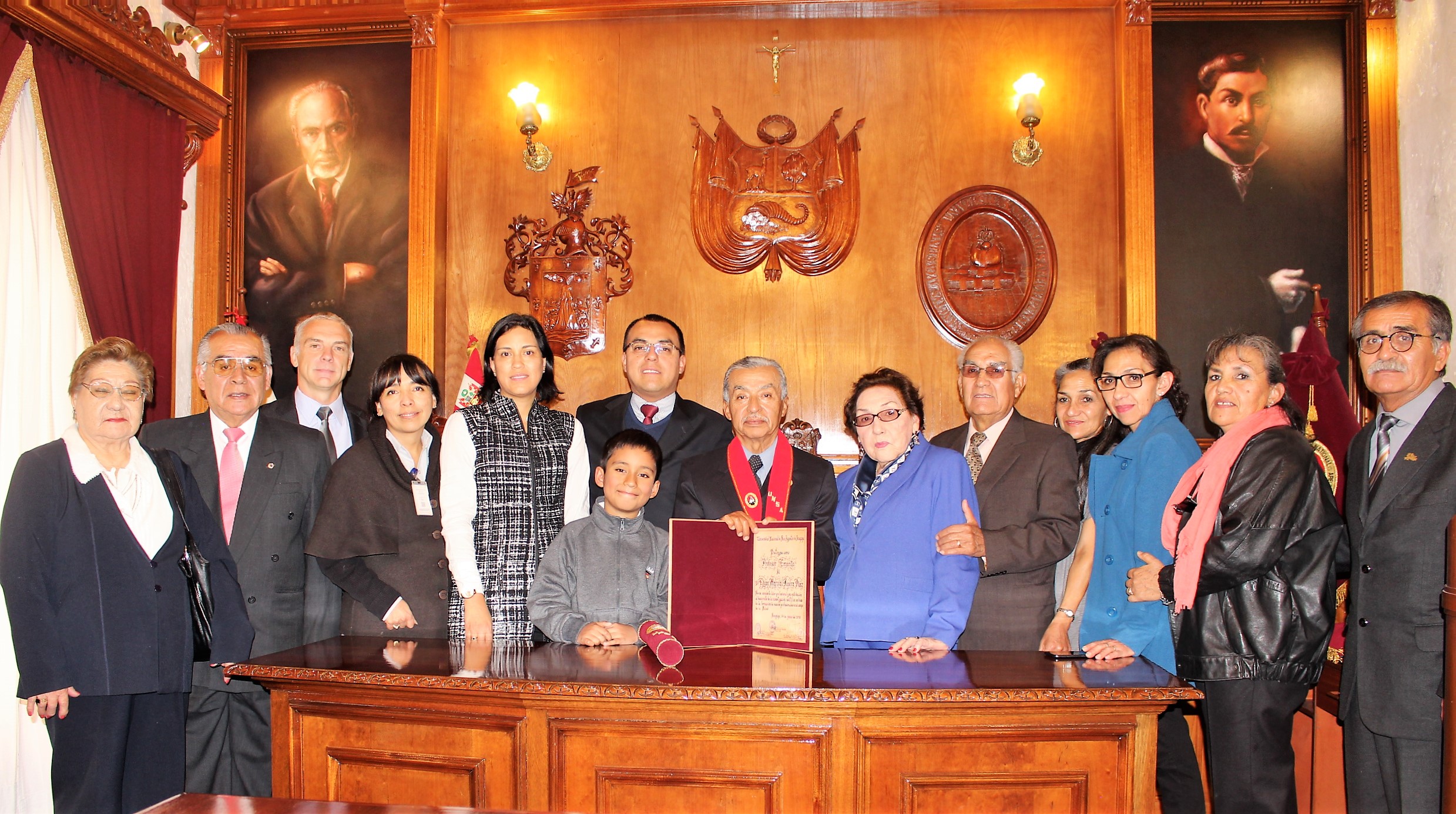 En mérito a su destacada trayectoria profesional y su valiosa contribución en el desarrollo de la docencia, la investigación y producción intelectual, en ceremonia especial, las autoridades de la Universidad Nacional de San Agustín de Arequipa, mediante Resolución de Consejo Universitario 0360-2018, otorgaron la Distinción de Profesor Emérito al Dr. Edgar Marcial Rivera Díaz, con todos los derechos y deberes inherentes a tal designación.