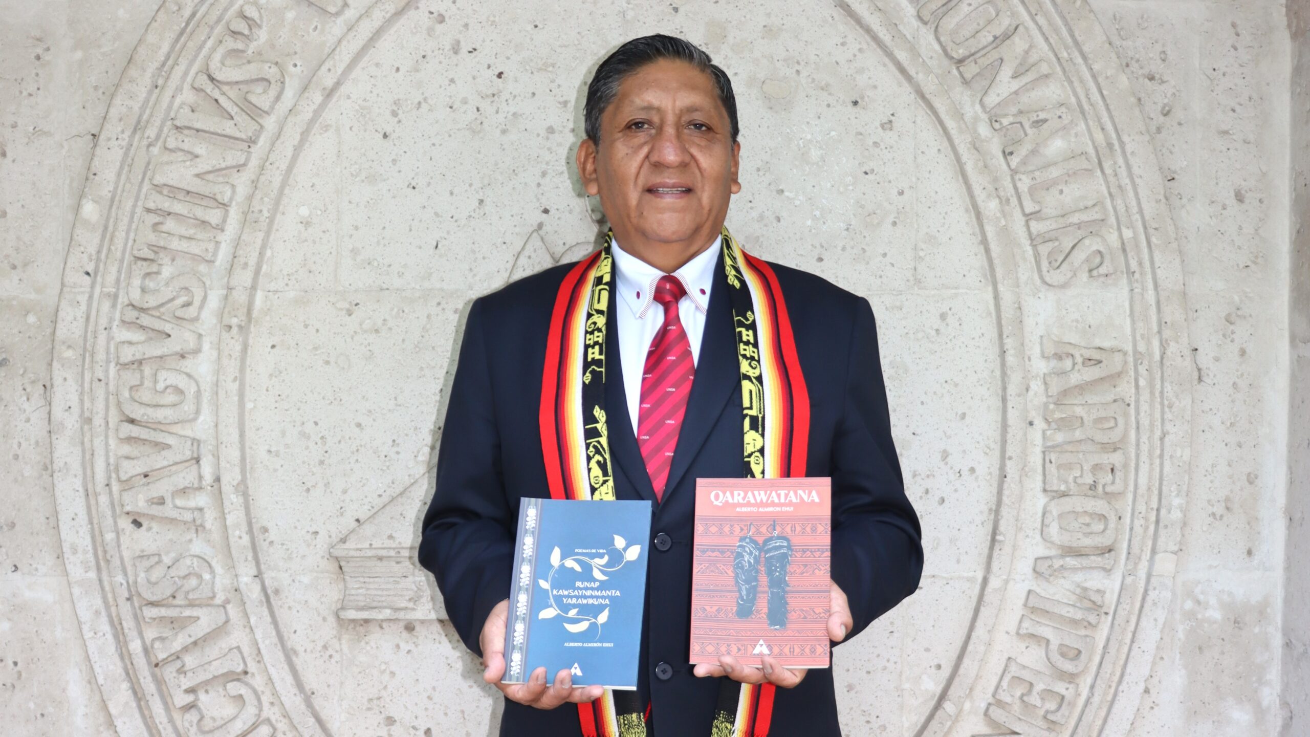 El Dr. Alberto Almirón Ehui, docente principal de la Universidad Nacional de San Agustín de Arequipa (UNSA), recibió una Mención Especial en el Premio Nacional de Literatura 2024 – Edición Bicentenario, en la categoría de Literatura en Lenguas Indígenas u Originarias, por su obra Qarawatana.