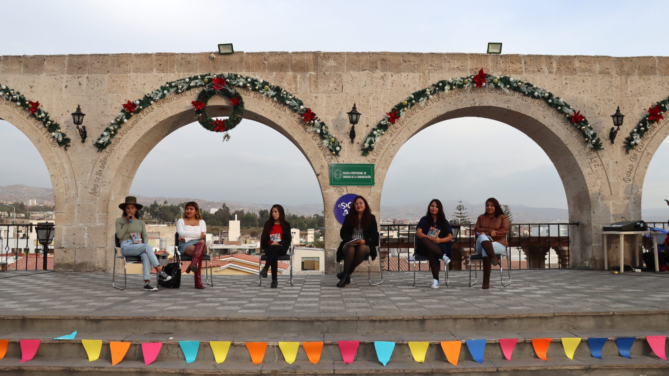El segundo día, la ciudad de Arequipa se llenó de color y creatividad con las actividades al aire libre en los Portales del Mirador de Yanahuara, un espacio icónico de la ciudad donde la Feria Cultural se destacó por sus presentaciones de libros, danza, poesía y música en vivo, además de exposiciones fotográficas, fanzines y más, elementos que sirvieron como vehículos de expresión artística para reflexionar sobre las realidades sociales y culturales del país, promoviendo así el talento regional y el arte como una forma de resistencia cultural.