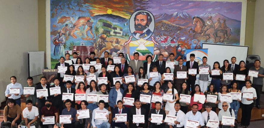 Los estudiantes que culminaron satisfactoriamente su formación, recibieron sus certificados otorgados por la UNSA en una ceremonia de clausura que se desarrolló en la municipalidad de Hunter, en donde participó su alcalde, Abog. Christian Arce Machaca, quien a la vez saludo y agradeció a la Casa Agustina; por esta capacitación y el apoyo a la población del distrito.