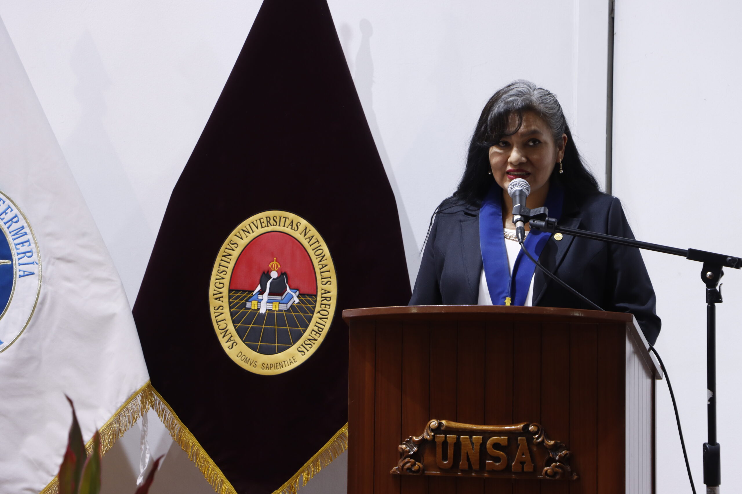 La Dra. Mayrene Abarca, decana de la Facultad de Enfermería de la UNSA, hizo esta reflexión durante la ceremonia por el 61.º aniversario de su creación. La decana remarcó que la esencia de la profesión no radica solo en la técnica, sino en la capacidad de humanizar la ciencia y sostener un compromiso ético permanente.