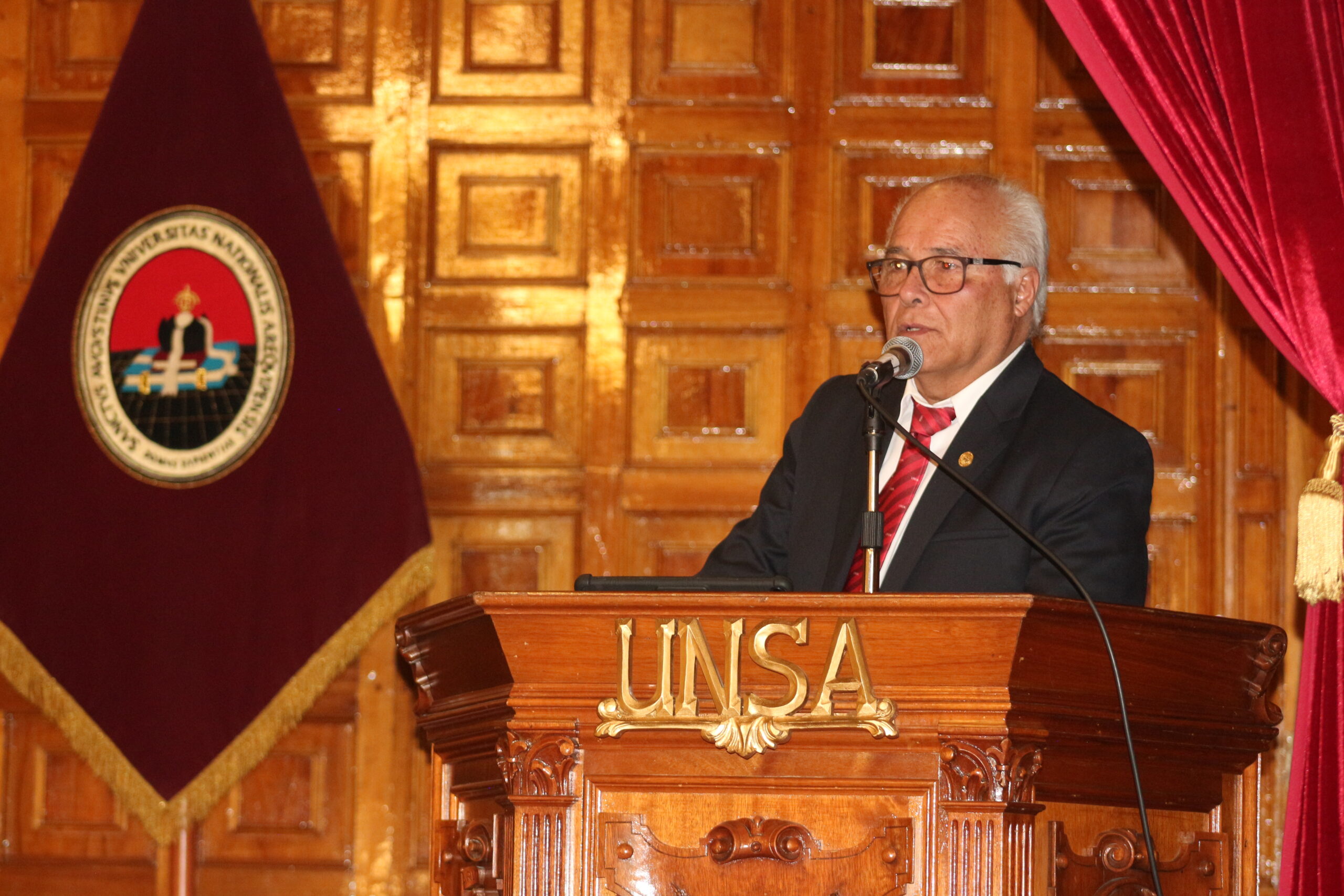 Continuando con el protocolo el Dr. José Luis Ramos Salinas, compartió en el discurso de orden un panorama histórico sobre la situación en la que se encuentra el Perú y cómo es que la región Arequipa y los problemas sociales han de ser objeto de estudio por parte de los futuros profesionales de la Sociología.