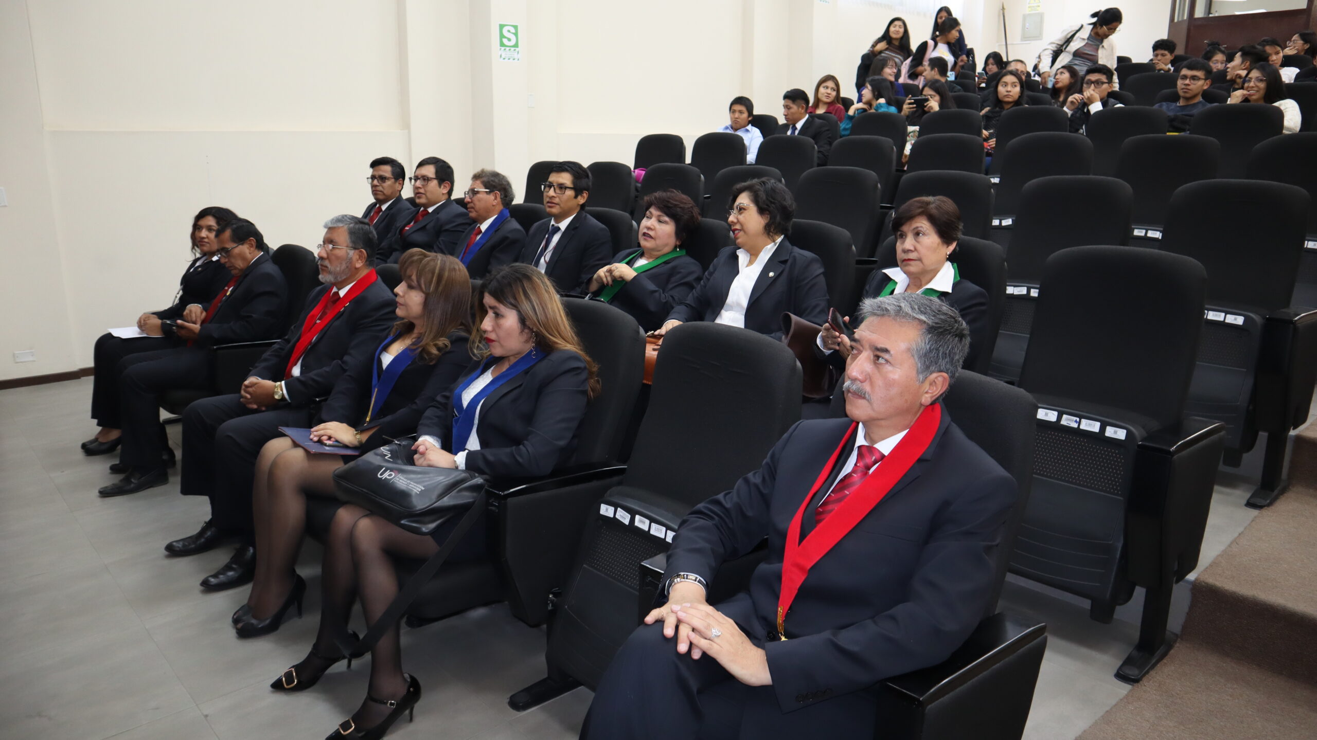 Como acto central se desarrolló la Sesión Solemne presidida por el Dr. Fredy Saravia Dongo, decano (E) de la Facultad de Psicología, RR. II. y Ciencias de la Comunicación, participaron además el director, Dr. Edgard Ancori Villegas, el director del Departamento Académico, Dr. José Luis Evagelista Aliaga; así como docentes, personal administrativo, estudiantes e invitados.