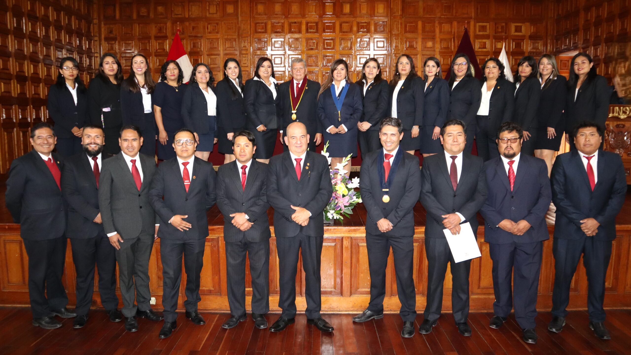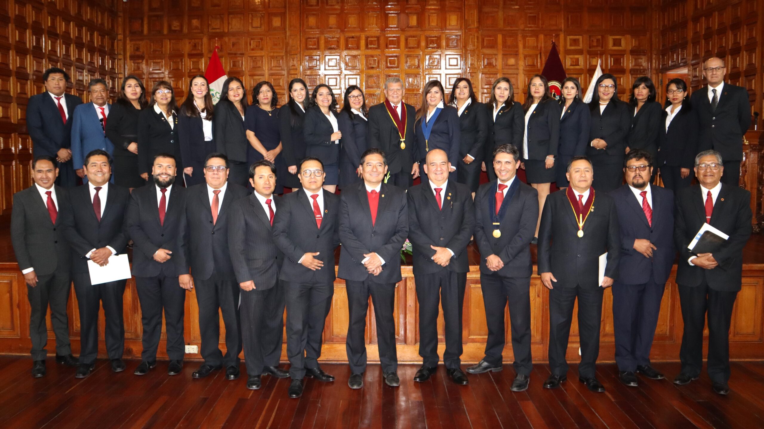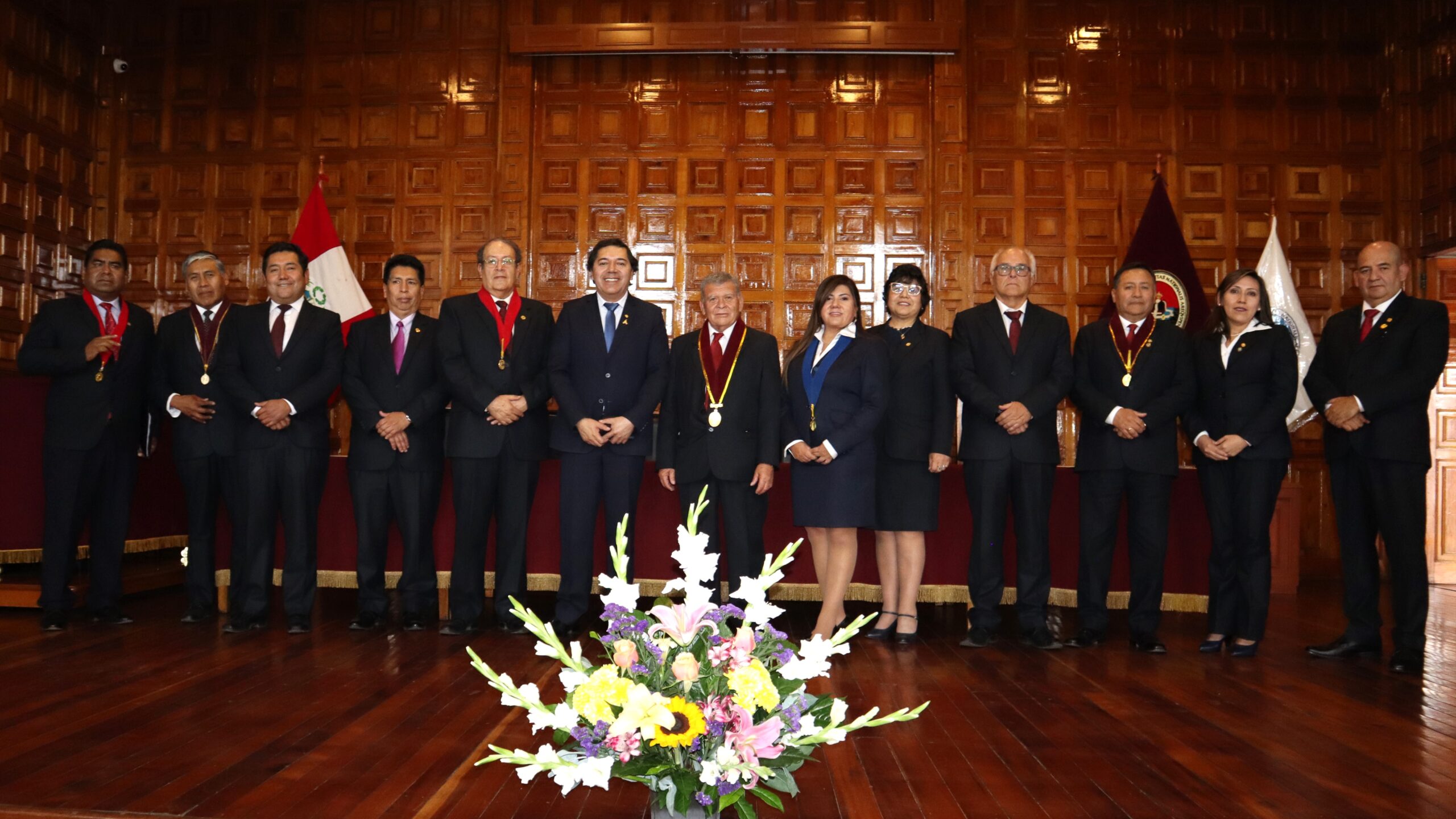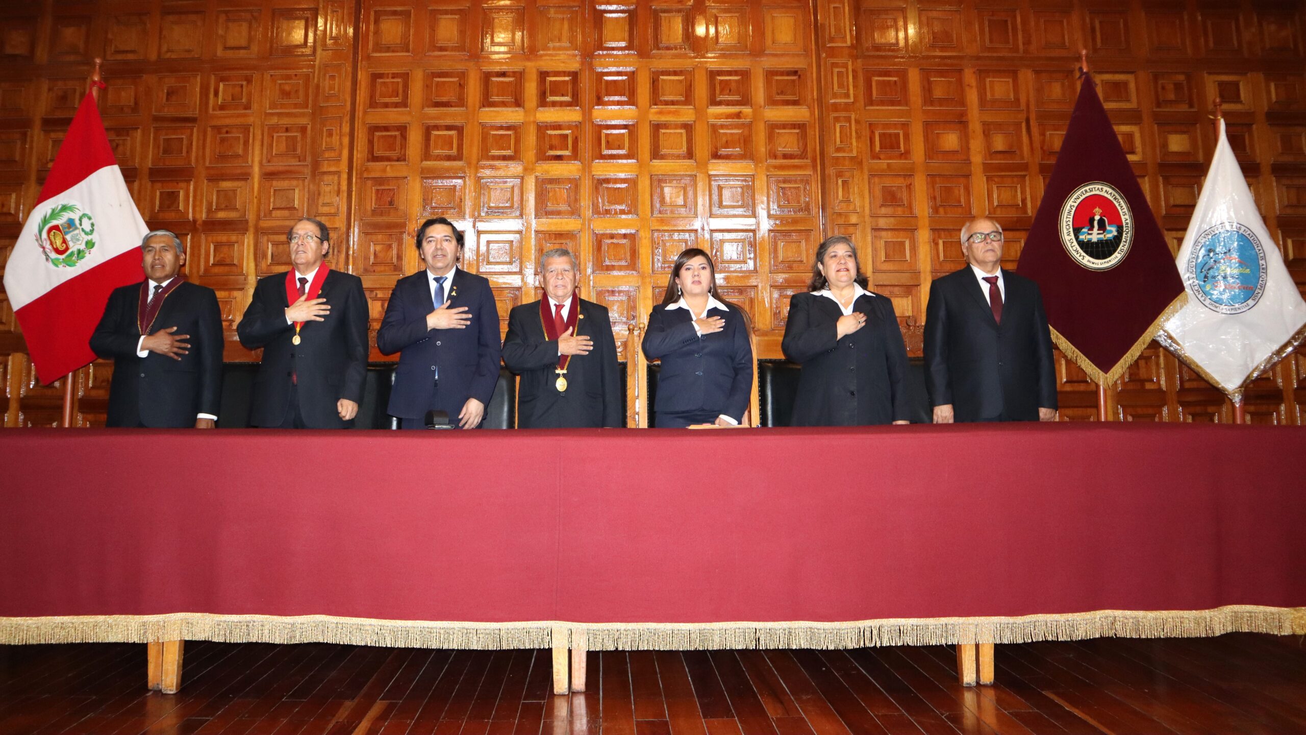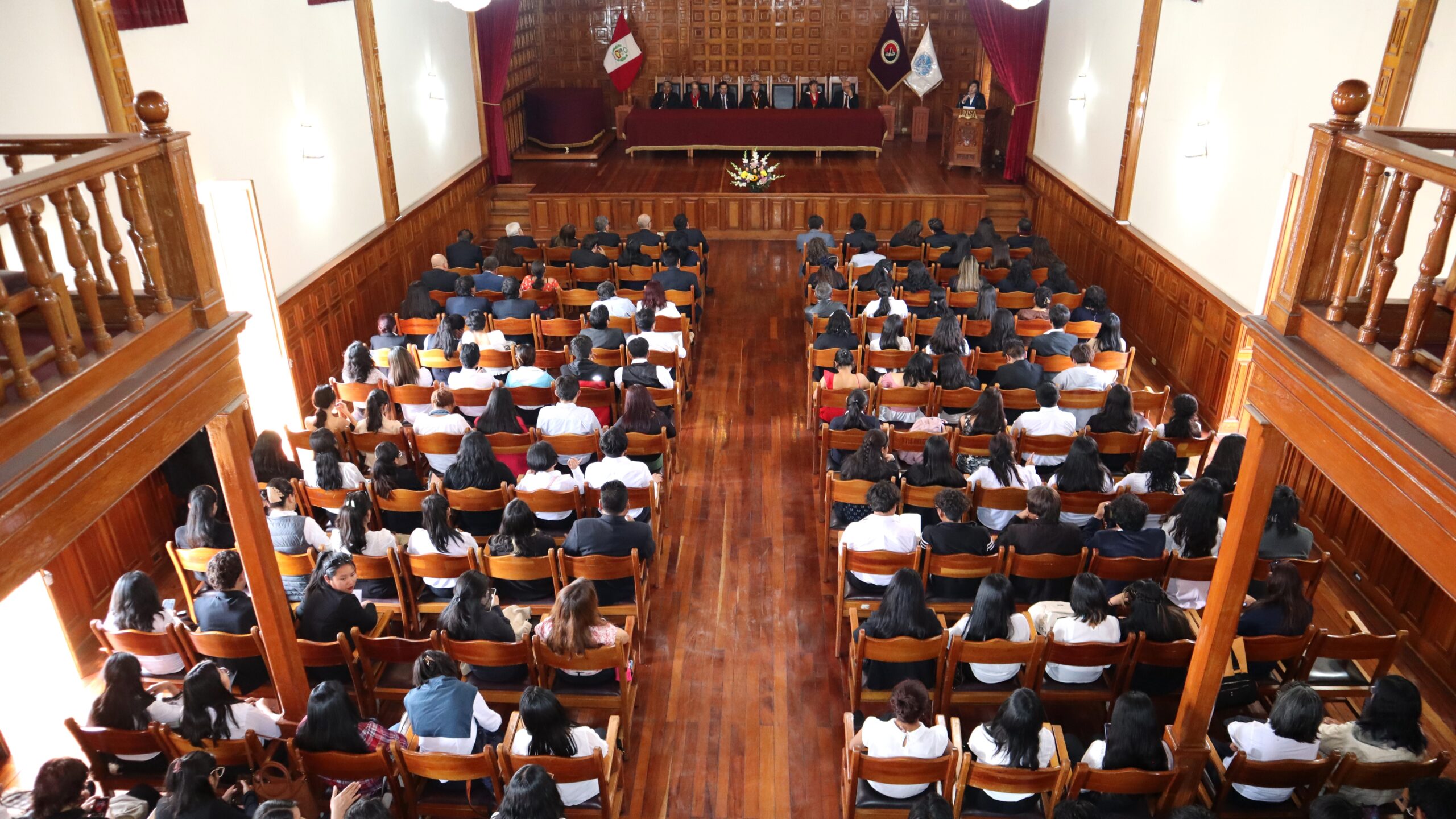 Autoridades e invitados especiales en la sesión solemne del Paraninfo Arequipa.