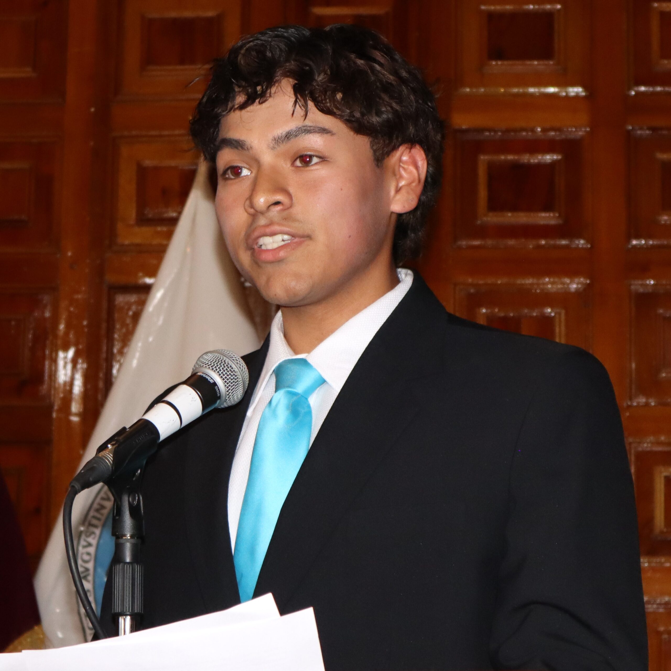 En representación de los estudiantes, Ricardo Alonso Ramírez Arias agradeció y reconoció la labor del decano, la directora y los docentes por su dedicación y compromiso, preparándolos para ser profesionales competentes y ciudadanos responsables.
