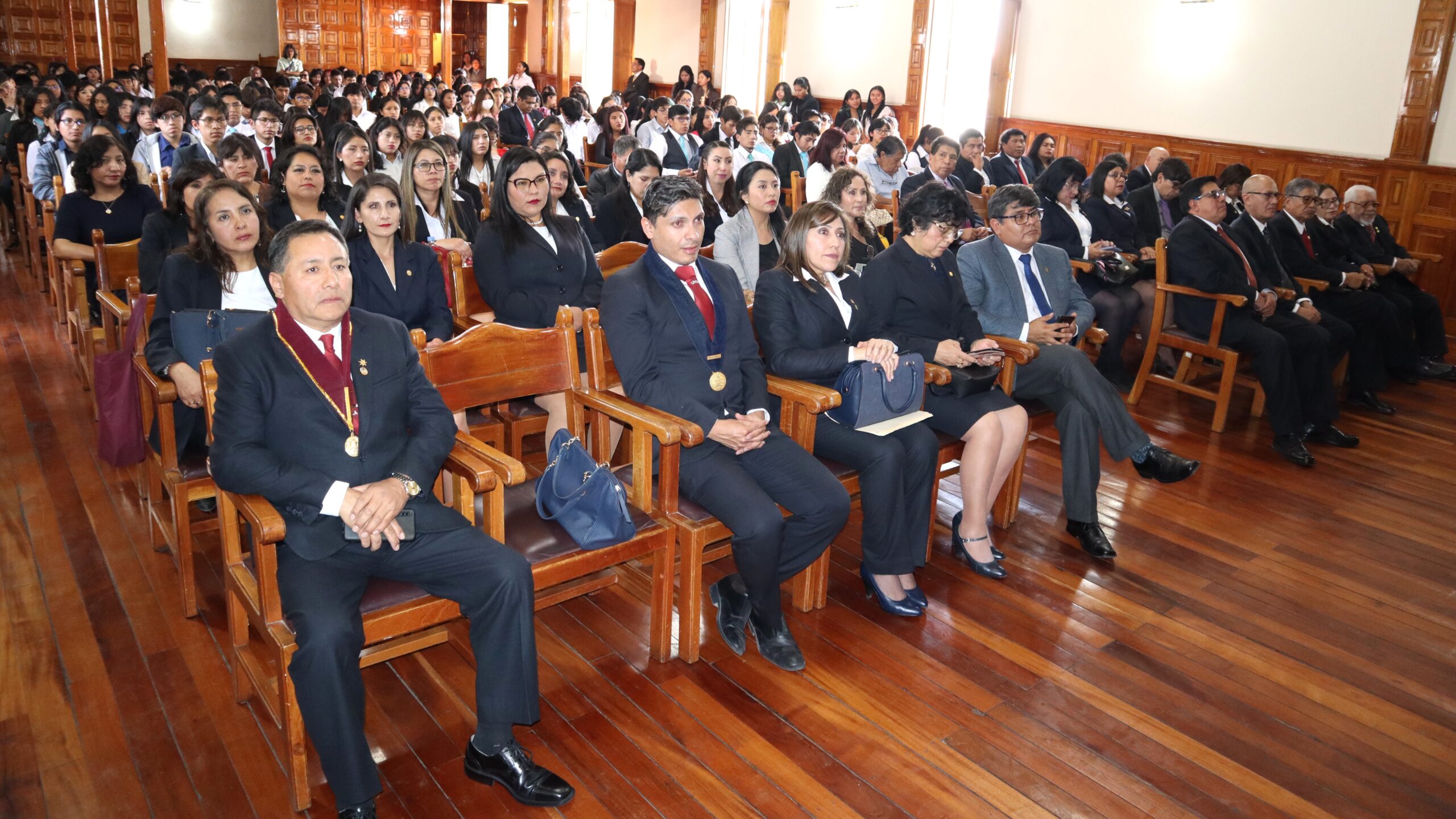 Autoridades, docentes, estudiantes e invitados presentes en los actos protocolares