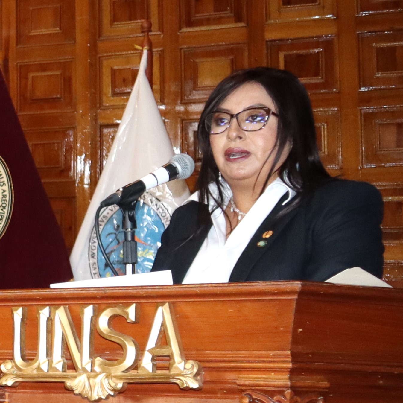 La lectura del Acta de Fundación estuvo a cargo de la Mg. Patricia Mercedes Chávez Cornejo, quien recordó los inicios del programa de estudios y su evolución a lo largo de 25 años, así como las autoridades que hicieron posible su creación para formar profesionales competentes.